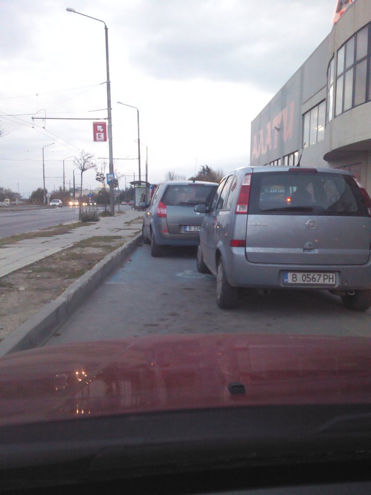 Та , странно как , но кола 2 се премести "самостоятелно" метър напред за да пази място /най-вероятно на някоя VIP особа/...уникален тактик е тоя , не само , че е на тротоара , но си и мести кенефа като в момента с 2-та таралясника е заел 3 места