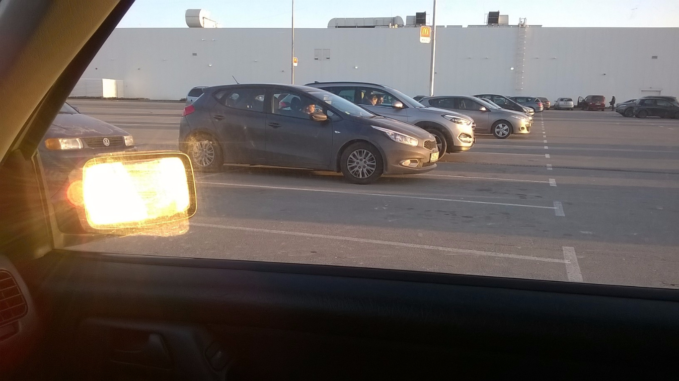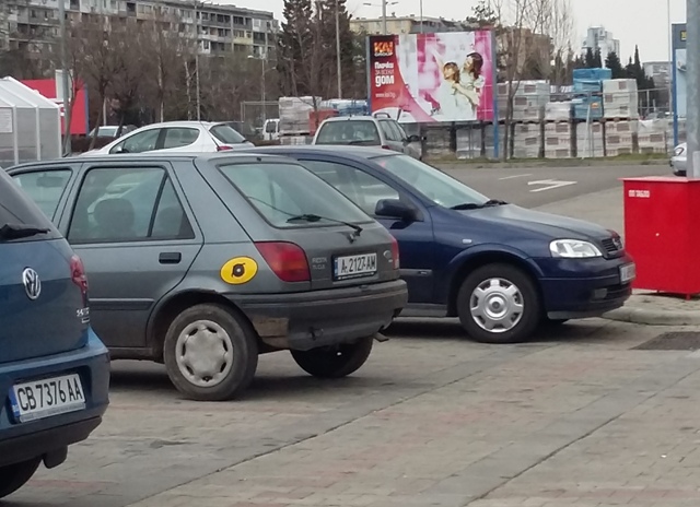 Днес на паркинга на Кауфланд /полупразен/,типичен селски бег /видях го като спря и слезе/ ,изглежда забеляза че го гледам някак неприятно и както беше тръгнал към магазина се върна и ме пита какво снимам /понеже демонстративно му снимах колата/ ,на което отговорих че каквото искам това си снимам и влязах в магазина! След 5 мин бях купил каквото ми трябваше и се огледах на паркинга,вижда се че се е стреснал от фотографа и е направил страхотното услилие да сложи таралясника където му е мястото ! Не е зле понякога да се опитваме да повлияем на такива дебили,току виж някой успял :)