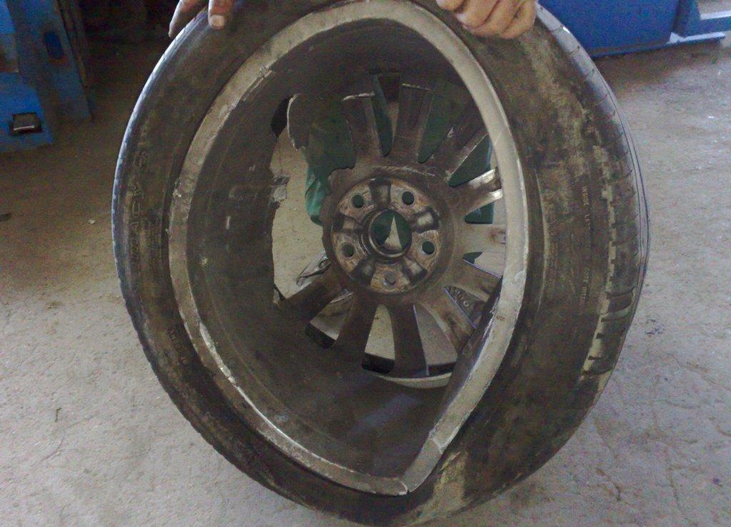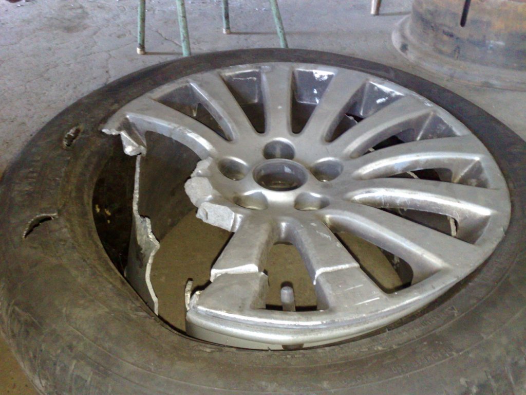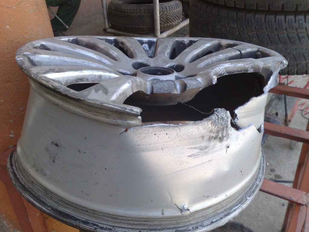 След удар в бордюр с около 20км/ч!Поне така казаха в сервиза,в който я видях.Да уточня,че е някакво менте,не оригинал!