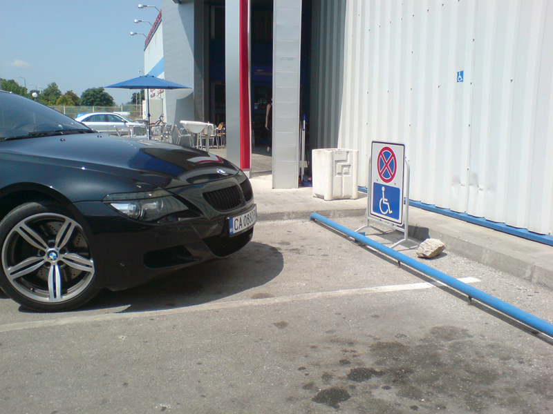 един хубавец (колата) .. няколко часа след като го снимах колата беше "паркирана" на друг паркинг, там заетите места за инвалиди бяха 2