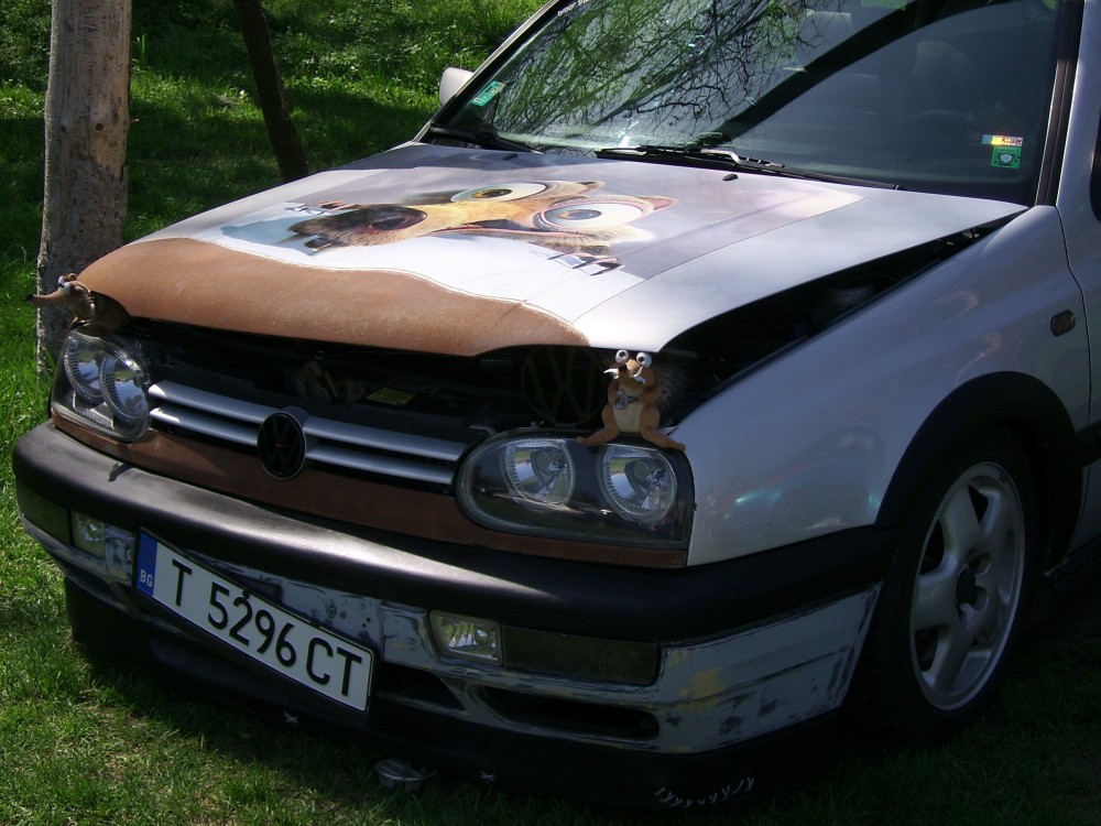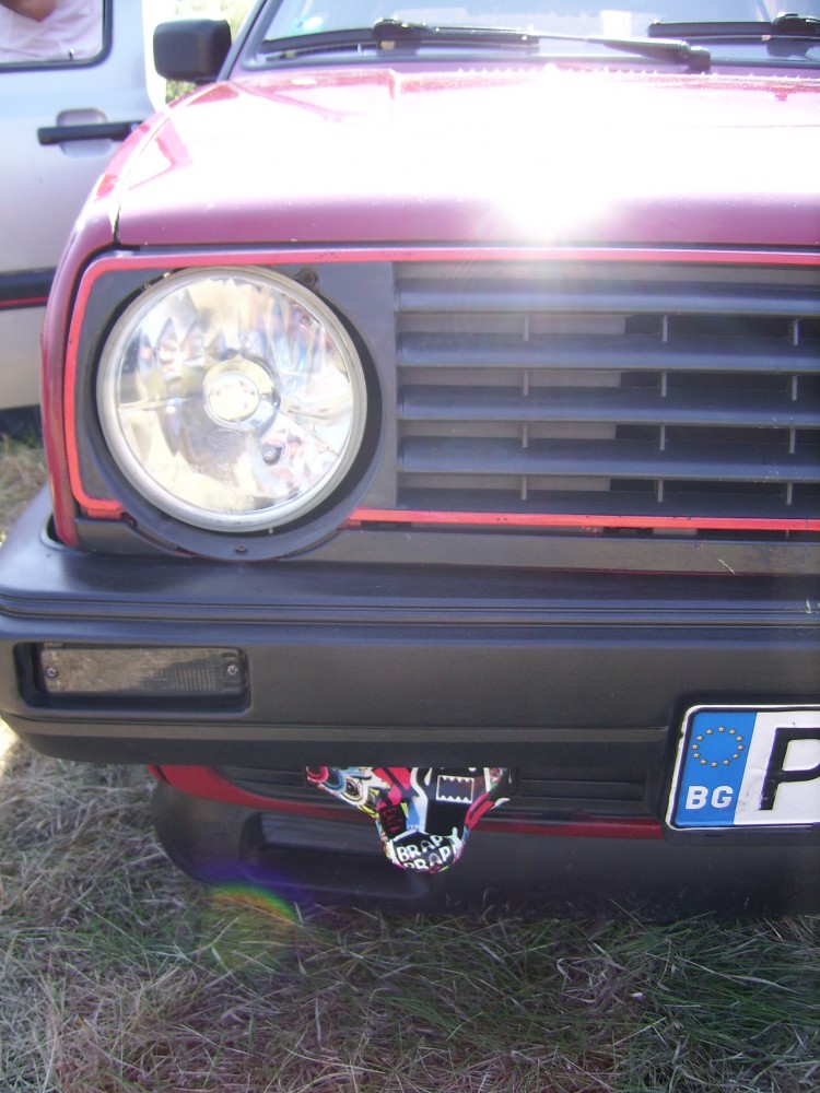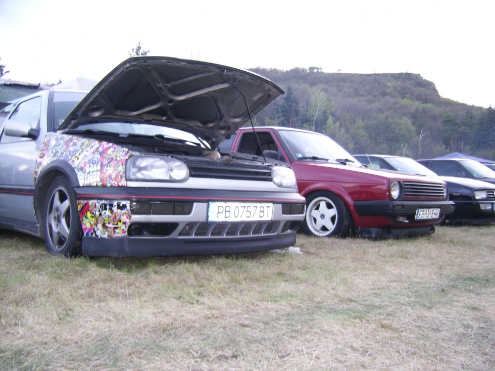 Аз да постна малко снимки на колата, която ми направи най-голямо впечатление на поляните, жалко че не беше българска. Имах възможността да си разменя няколко думи със собственика и, и искам да дам малко повече информация за колата, тъй като сигурно повечето от вас не са разбрали много за този автомобил, по простата причина, че колата и собственика и бяха на поляните едва един час, за което евала му правя, че е бил път от Букурещ до Крушуна, стоя един час при нас, и хайде пак наобратно, на това му казвам истински фен! Не за друго, ами защото колата е била завършена в събота сутринта!!!И това е било първото и изкарване от гаража след смяната на мотора Който е 1.8 Турбо, с код APP, 200 + к.с. (не е замервана). Също така да кажа, че колата не е истинска американка, но успя да заблуди доста от нас. Дори на ламарината под предния капак имаше стар етикет, на който пишеше Westmoreland Колите на останалите румънци също бяха доста интересни, като две от тях бяха с AFN мотори. И явно всички те бяха заклети фенове на голф 2, тъй като, когато правиха обиколка на поляната с нашите автомобили, не се спряха при друг модел ФВ, освен при mk2