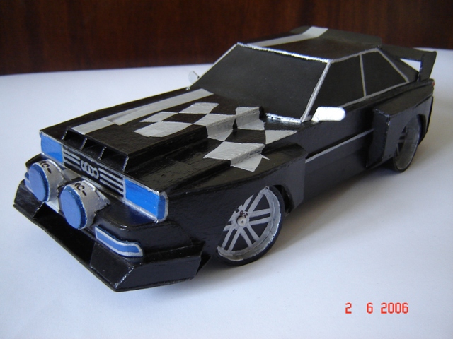 Ако ми позволите да добавя още една снимка от мен,която не е рисунка а по-скоро макетче от хартия от преди доста годинки,когато бях студент се бях зарибил да си правя подобни макети от каширан картон,клкечки за уши,ролките ,които остват от тоалетната хартия и какво ли още не.Съжалявам не е VW ,но е от семейството ,едно небезизвестно AUDI: