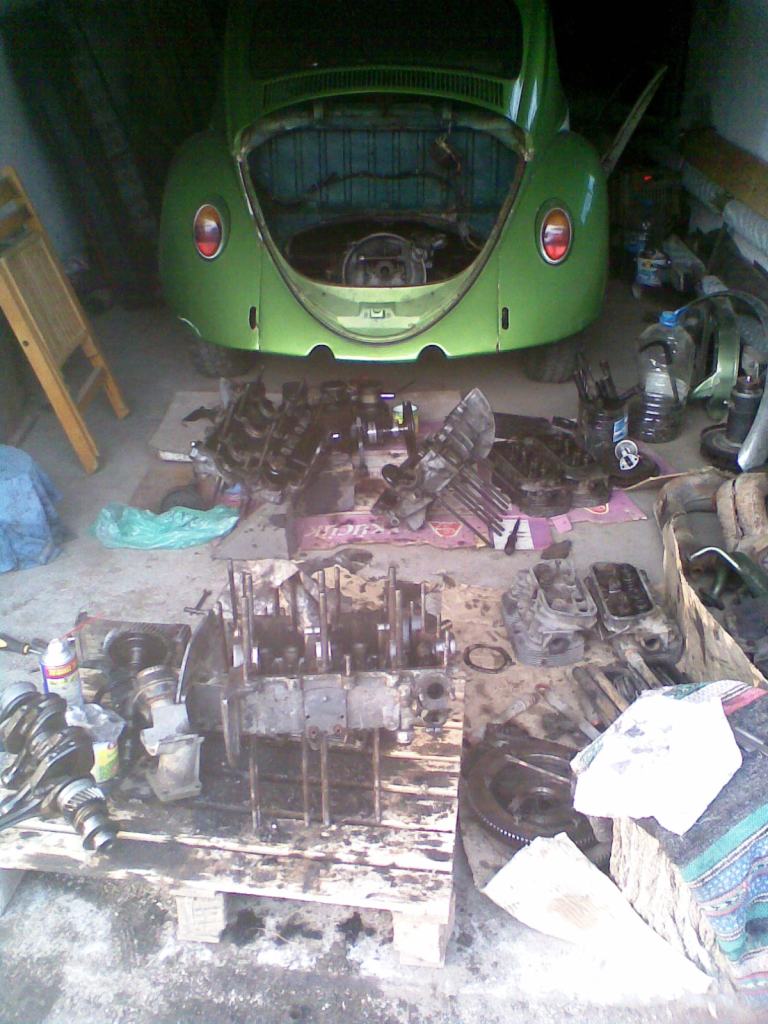 след дълго затишие ето ме и мен пак тук не че мога да се похваля с кои знае какъв напредък но малко по малко деиствам след като преди 4 месеца разглобих двигателя сега почвам да сглобявам по малко в началото беше така