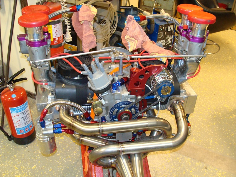 This was was spotted at Hampton Downs last year. It is a Toyota MR2 supercharger with a Jaguar 2 inch SU carburetor. It is coupled up to the VW crankshaft pulley. The owner said the MR2 supercharger has the advantage of it's own oil supply, but it is a big mother and I am not sure about the very long induction tubes. It is in a home built 'buggy' and went very well.