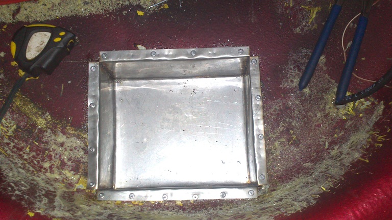 от ламарина неръждавейка 0.5мм зглобяваме една кутийка и другото е рязане напасване и игра с нитачката