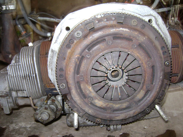 Когато снимах това горното на маховика нямаше съединител и претискател! Може би претискателя ще опира в кутията, но съм чел, че може да се "почисти" това онова от кутията и работата да стане. Аз лично не съм стигнал още до тази част
