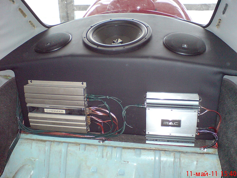 а това е моята добавка към колата. баса и двете колони са си в затворен обем по отделно и със вата вътре. свирна уникално