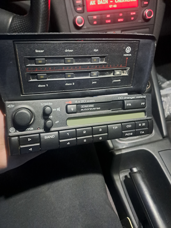 Здравейте отново малко раздвижване по темата бяха намерини някой части който се търсеха първо да започнем с предна дясна врата защото нещо е била удряна и има доста кит по нея който се пука намерих читава врата от голф 3 кабрио те са еднакви с на 3.5 лайстини по вратите също ги взех защото мойте някой са криви другите хванати с рапидки предна маска също взех защото и отпред е имала лек удар маската е крива намерих перфектна маска без забележка също така взех днес перфектна предна броня моята е хващана и тя с рапидки и най може би ценното за мен е оригинален километраж за 3.5 който свети в синьо също така се снабдих с оригинално касетофонче и еквалайзери нокия та ето малко снимки какво съм намерил за момента чакаме пролетта да се почне работа по колата за момента е трупане на части