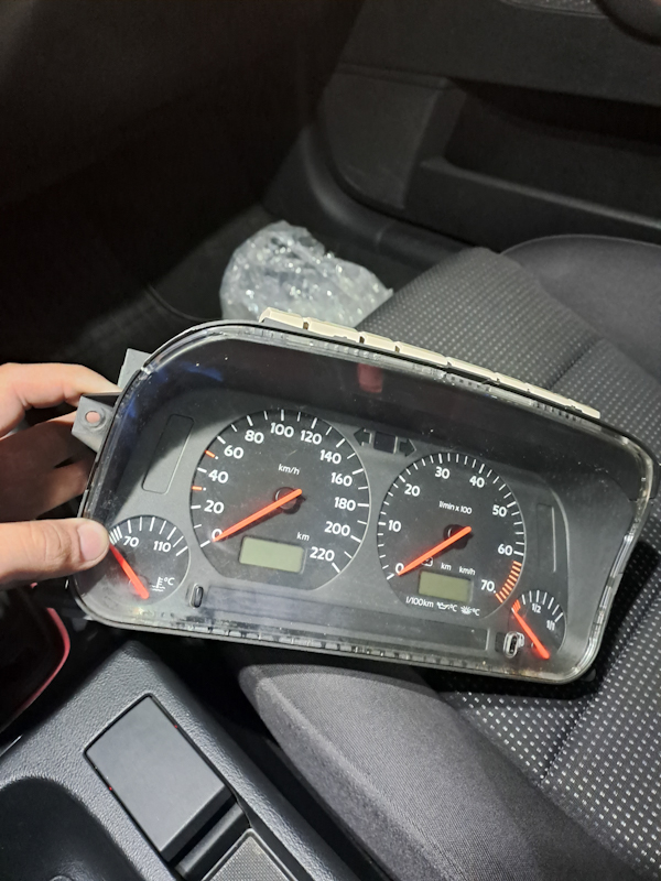 Салона също е в прилично състояние нямам много снимки на интериора намерих му километраж с борд комютър защото оригиналния километраж е сменян ще преправя този да се доближи максимално до оригиналния също така съвсем случайно намерих и копче за подгрев на седалките което нямаше как да не взема