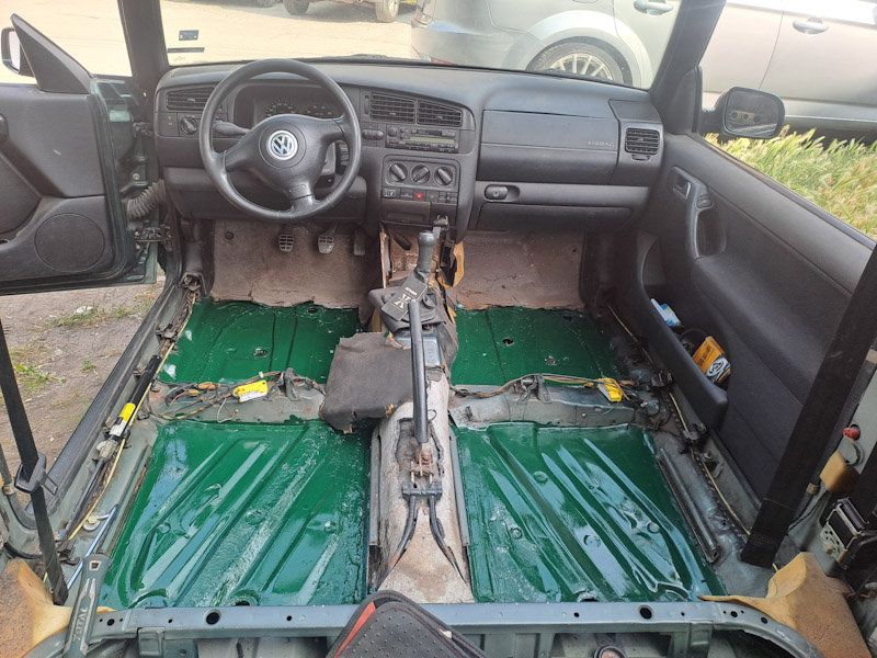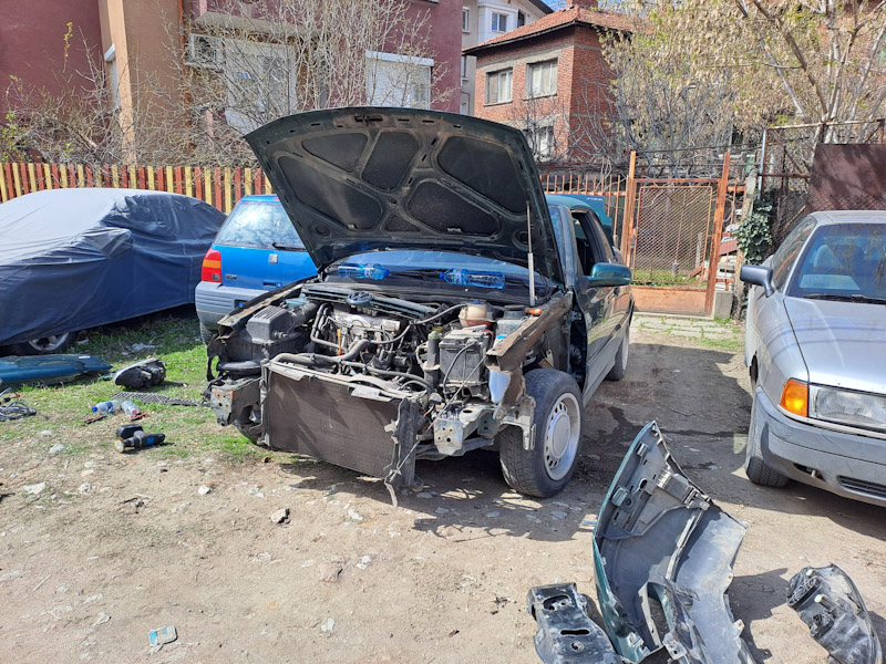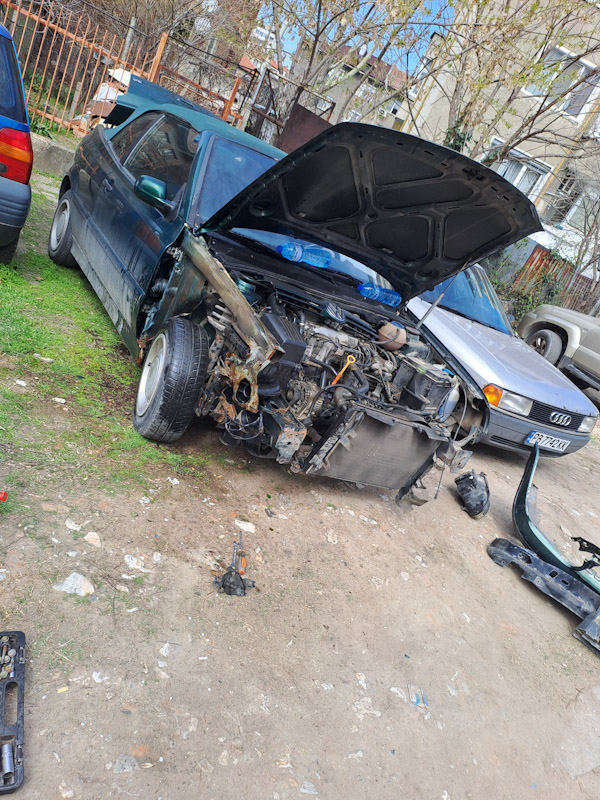 Здравейте малко да раздвижа темата какво се случва с голфчето. Има дооста свършена работа по него в през изминалата година колата беше разглобена изкърпена и цялостно боядисана почти цялата предница се смениха се двата калника очиларката предна броня фаровете също се смениха защото повечето крепежи бяха счупени и липсваха пода също бе изкърпен защото излезнаха дооста дупки намериха се дъна от кола донор защото нови неможах да намеря дясната врата също бе сменена защото е удряна и имаше кит който се пукаше и падаше просто нямаше смисъл да се прави също така случайно намерих зелени стопчета в много добро състояние нямаше как да неги взема ето и малко снимков материал
