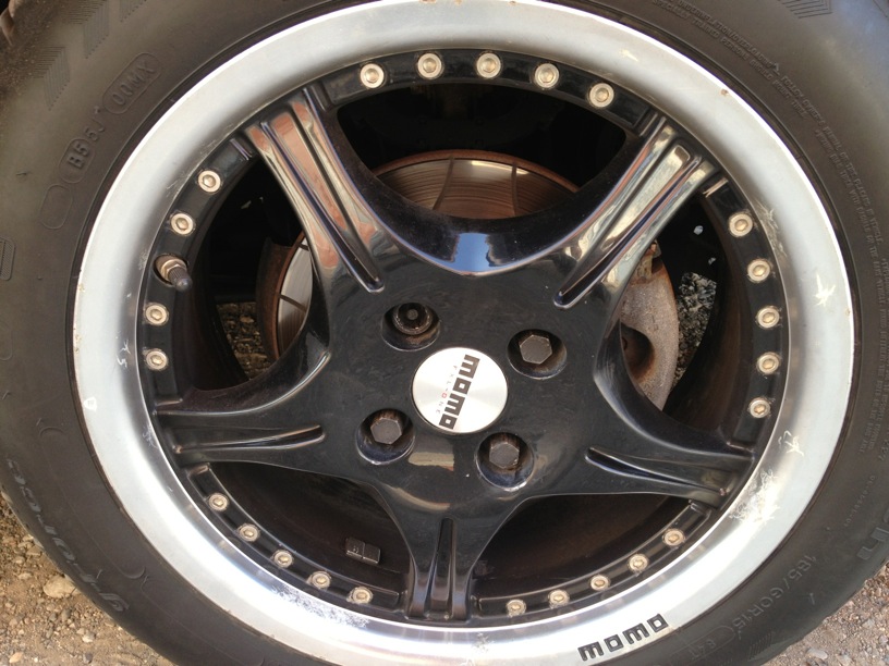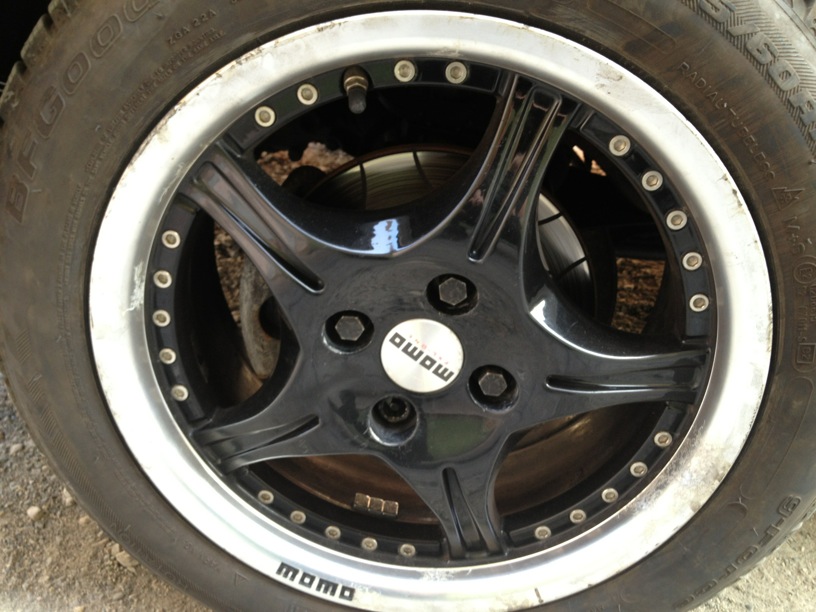 Както се вижда от снимките в близък план, новите стари джанти са напълно осрани по борда. Под лака е влязла някаква гадост, която сваляне няма. Имах доста идеи какво да причиним на тези джанти с Радо Боята, но нека да има съспенс и вълнение. Утре ще пусна снимки на крайния продукт.
