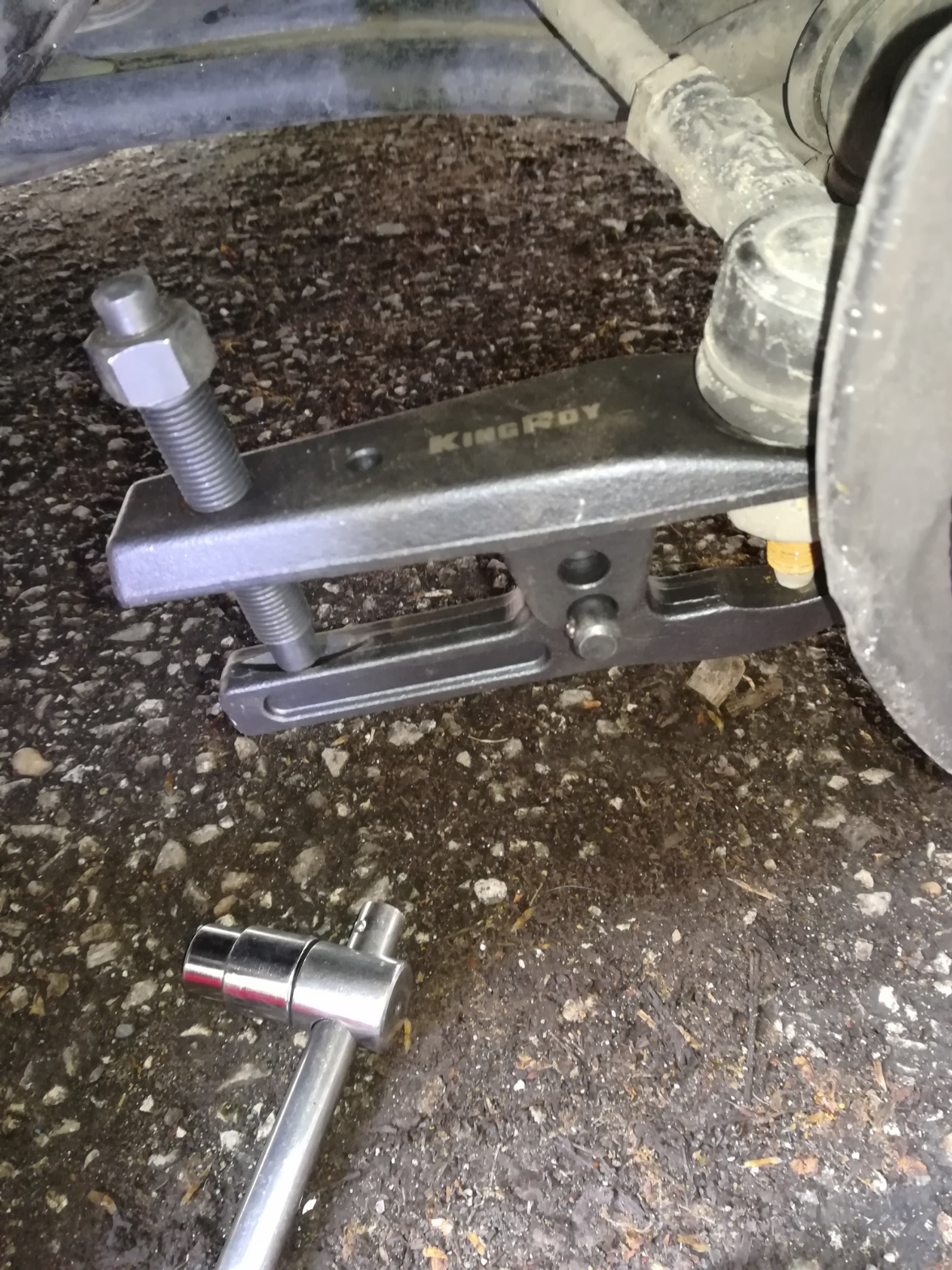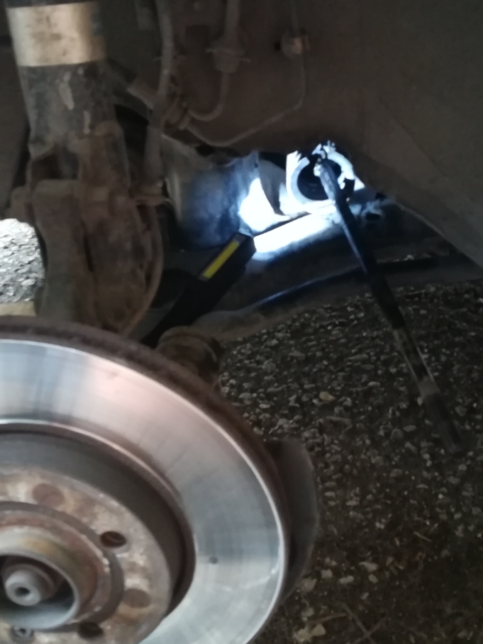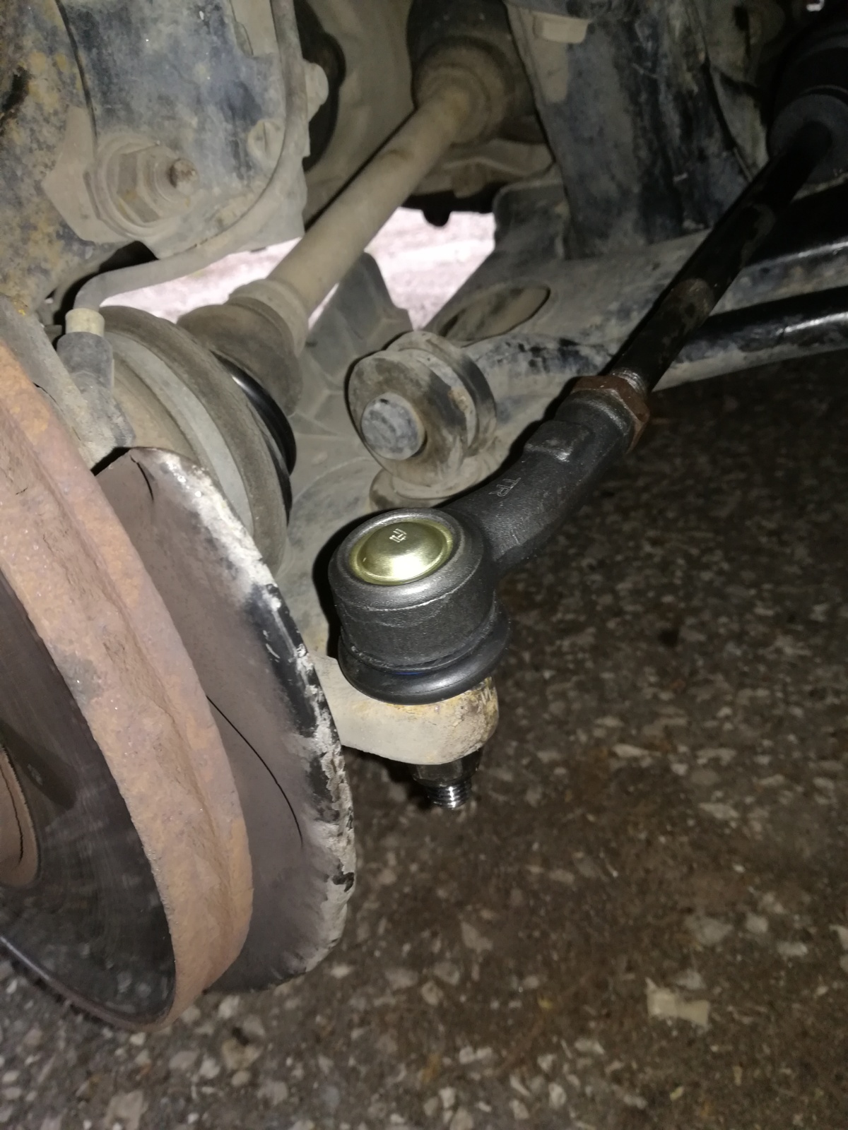 При обезвъздушаването на спирачките направих един бърз оглед и видях че външните кормилни накрайници са се поразбили, а отляво имам скъсан маншон на рейката.