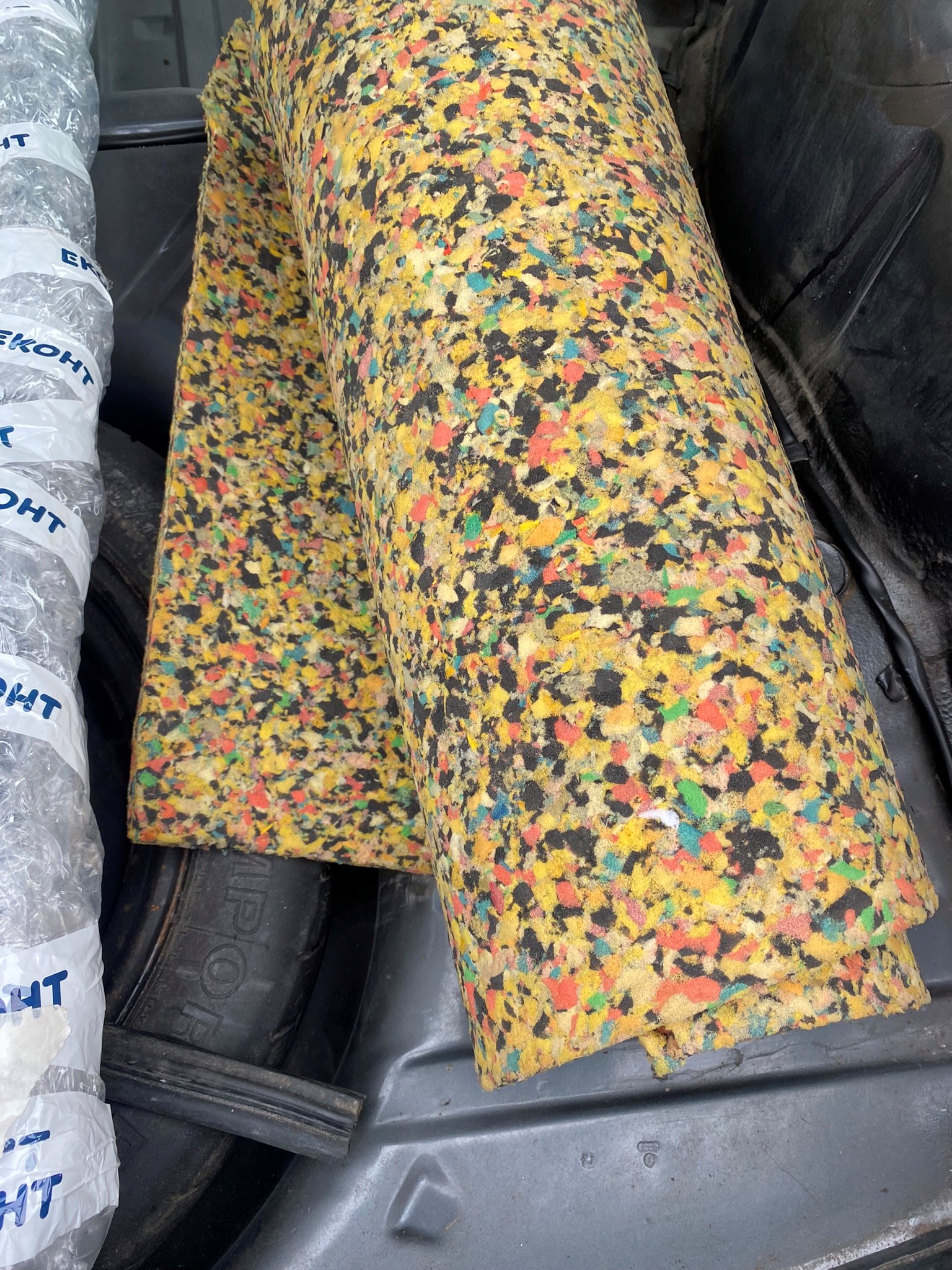 Голямо стъргане и на тоя материал където лежи задната гума, подариха ми нов такъв, май пресован полиоретан ли какво точно се водеше забравих...