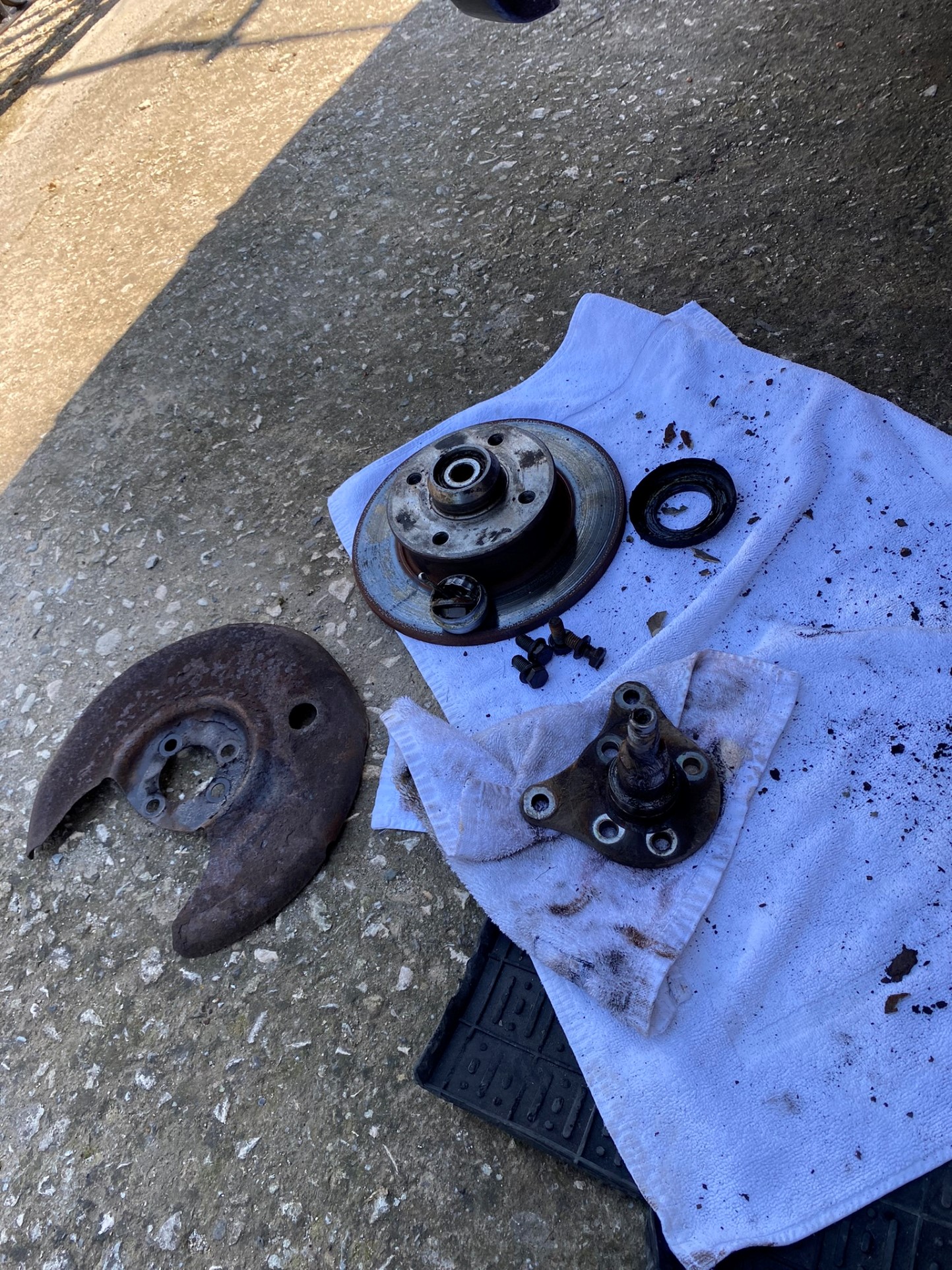 И там мизерия... Палците за ръчната изядени, осите за буталото и те изядени, шайбите които го държат изкрвени... На тавана имах два донора гирлинг 36 от както взех колата, демек 13 години