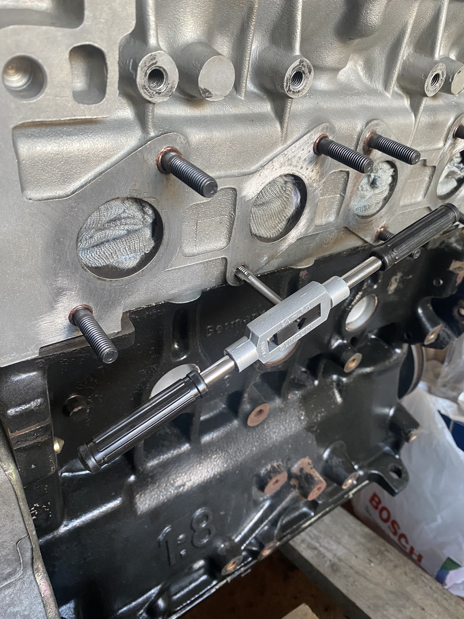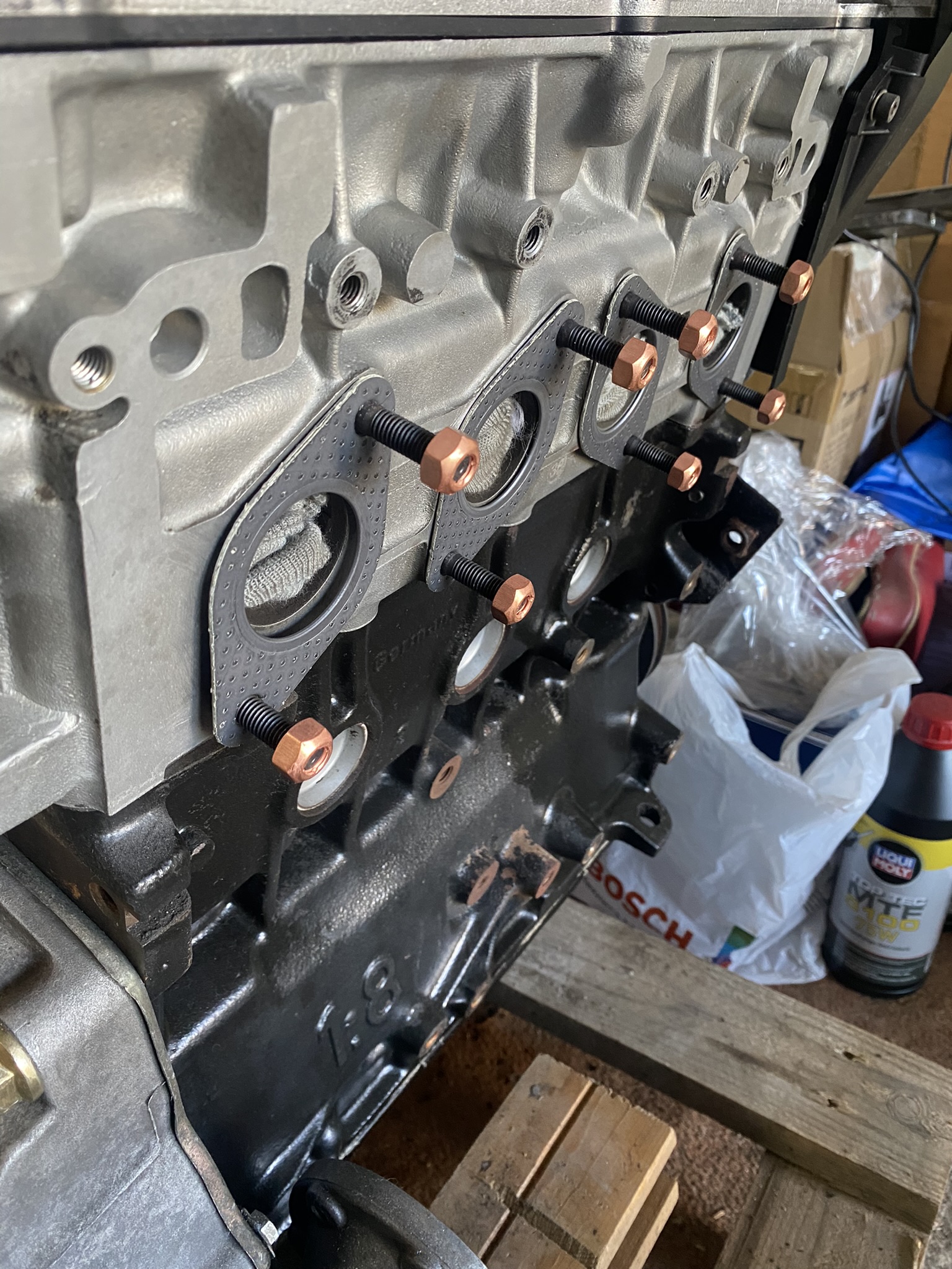 Измих двигателя, нови шпилки на изпускателя и нови гарнитурки, нова семеринга на коляновия и всичко обрано на мястото си.