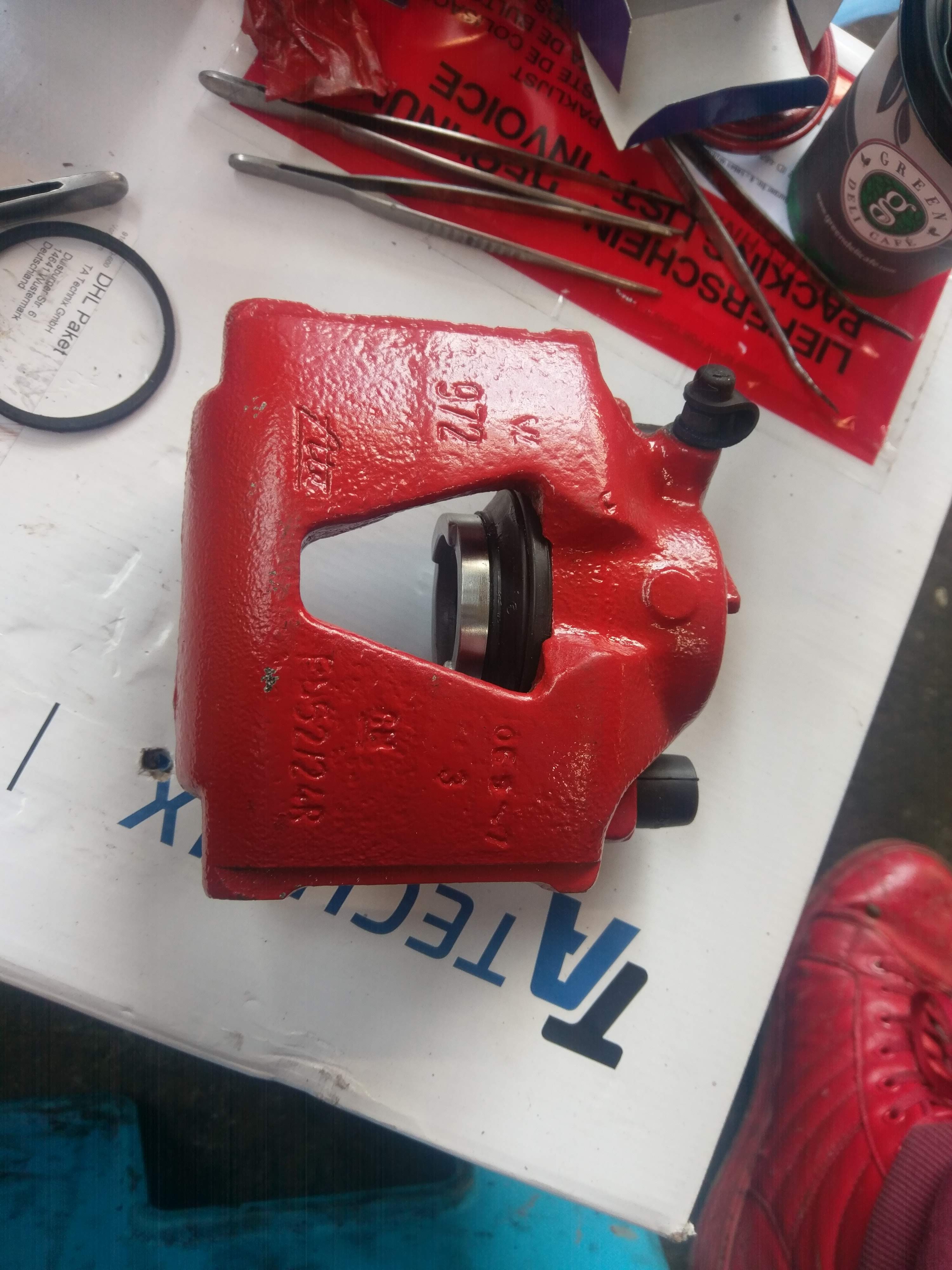 След новите джанти и окачването, трябваше и спирачките да минат под ножа. Ползвам апарат ATE и съпорт от Вектра B 1.6 16v , с диск от Голф 2 256мм вентилиран и маркучи от Лупо.