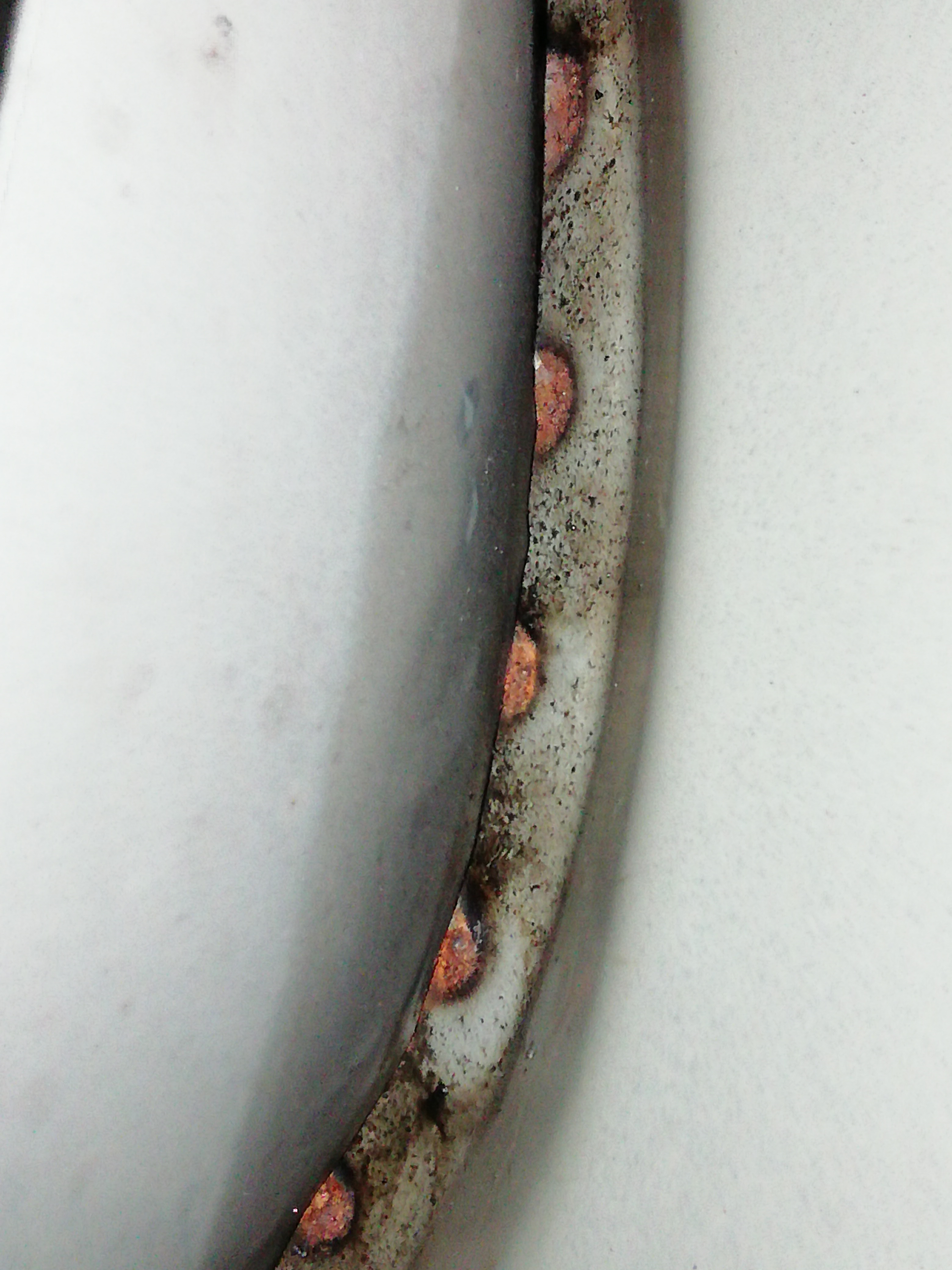 Направи ми впечатление че веждите отвътре са индукционно/точково заварени и изглеждат като много зле ръждясали въпросните точки. На пипане обаче не се усещат като ръжда, не цапат и не се ронят-някой ако има опит да каже дали е нормално да изглежда така или да ги мисля за някаква обработка: