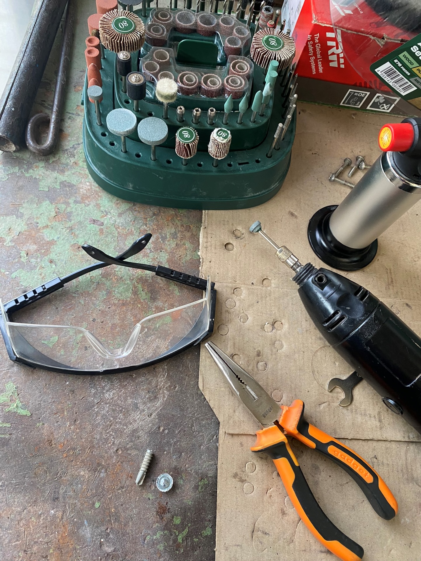 Нямаше как да монтирам мигачите обратно с ръждата, имах и едно счупено ухо на бронята.