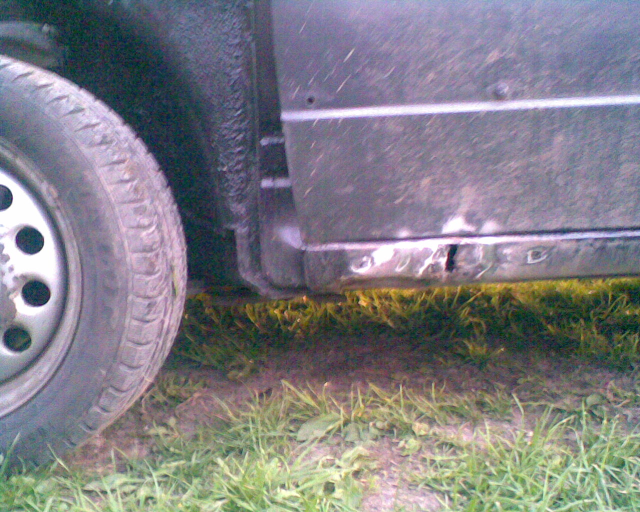 Оказа се,че някога предницата е пресаждана и въпросните забелешки по ламарината са на праговете при старата обшивка.Иначе като цяло наставката не е мръднала ,което ме успокоява ,че няма да се разпадне на две scare scare :D :D :D :D :D :D :D