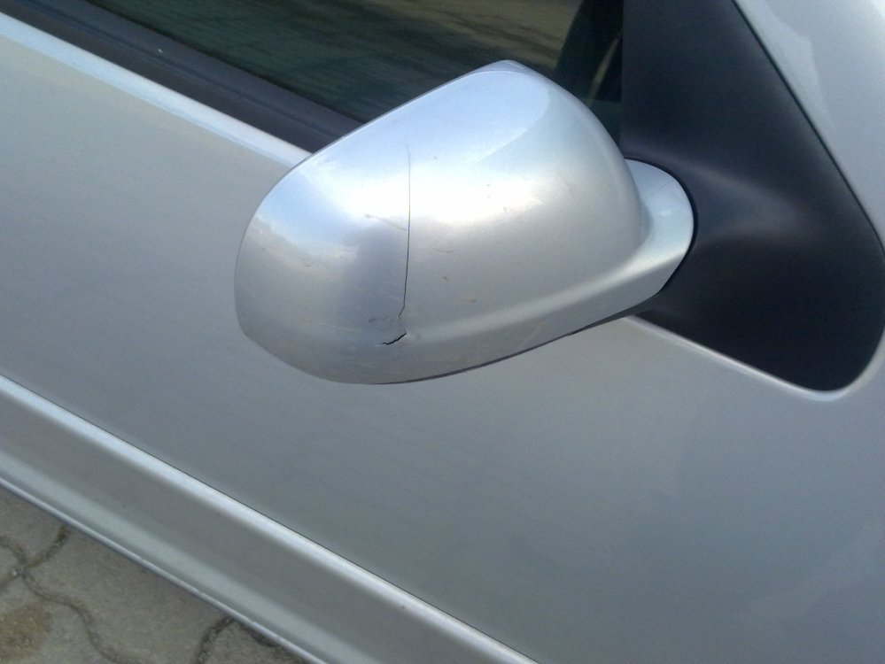 Също и дясното огледало е ударено и то ще трябва да се смени.Добре че има пълно каско
