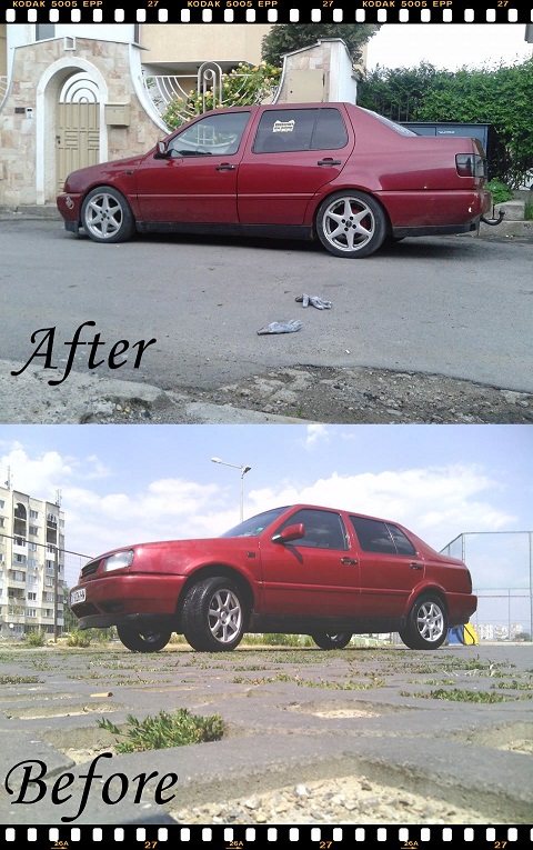 Личи си, че правиш колата с мерак, и естествено както ти харесва на теб, но като привърженик на изчистения вид, ще го дам малко на критика. За мен лично, гумите и джантите не са за тази кола, най-вече заради височината на колата като цяло - не говоря да я залепиш на земята, но в момента ми прилича на намръщено бъги с лампички. Това нещо на фаровете въобще няма да го коментирам.. Бронята определено се отличава, но не мисля че е като плюс.