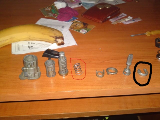Счупих пластмасовата скоба която го държеше (оцветена с Черно) всичко излетя и сега не мога да го сглобя ако някои има представа къде да поставя пружината (оцветена в Червено) моля да ми каже на ЛС ако има и снимки още по-добре търсих из нета но само на 3-ки откривам.