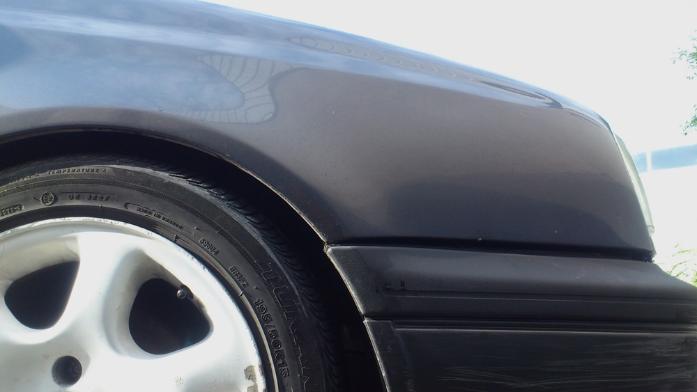 Ето резултатът след слагането на новите гуми 195/50 R15 и слагането на спортни пружини само отпред за сега.