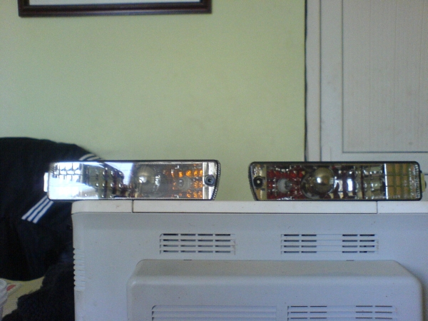 Ето тия мигачи ще вграждам в тясната броня имат си и габарит в тях,на живо са черни.Някой ако има няква счупена широка предна броня да си изрежа основите към мигачите ще ме улесни много с вграждането.