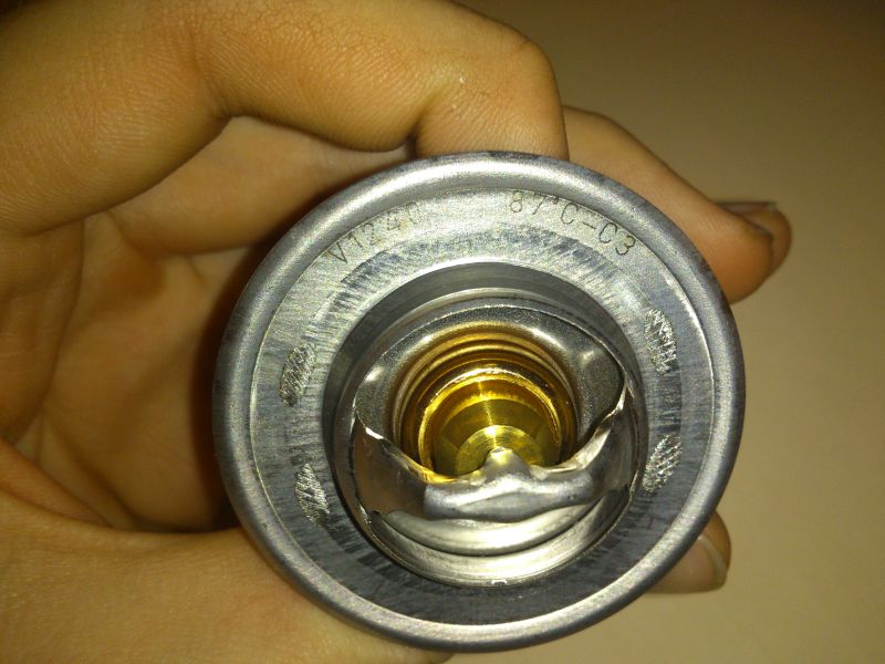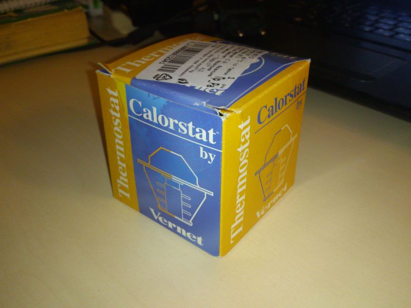 Днес си купих термостат за господин автомобила. Реших да го сменя,защото от него тече антифриз,а и колата не загрява повече от 70 градуса демек не загрява. Както ще видите и от снимките той е на марката Vernet, чувал съм добри мнения за тази марка, а и пасата сега е с такъв и е бил с такъв.Термостатчето е на 87 градуса и утре ще бъде сменен както и стария антифриз, взех някакъв по-специален, май беше червен нещо бил по-добър абе ще видим. Ще кача и снимки от смяната. Само да питам тези,които знаят да ми кажат, защо са ми толкова много пръстени? Тези гумените