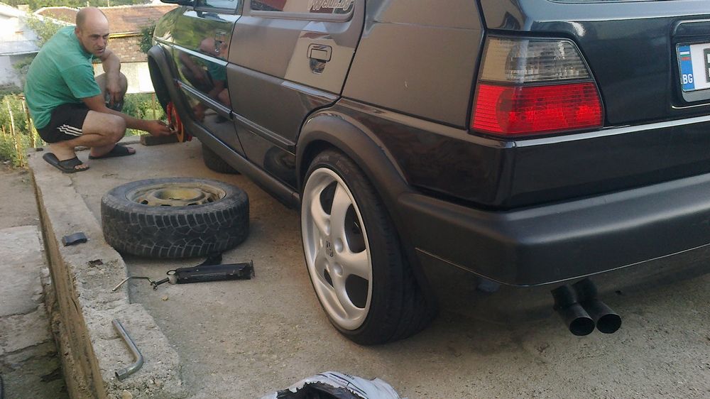 здравейте скоро не е писано по темата има някои промени по колата джантите са продадени и набавен нов комплект оригинални джанти от порше с между болтово разстояние 5х130 също така се правиха и фланци от 4х100 на 5х130 с размери 35ммзадни и 25мм предни