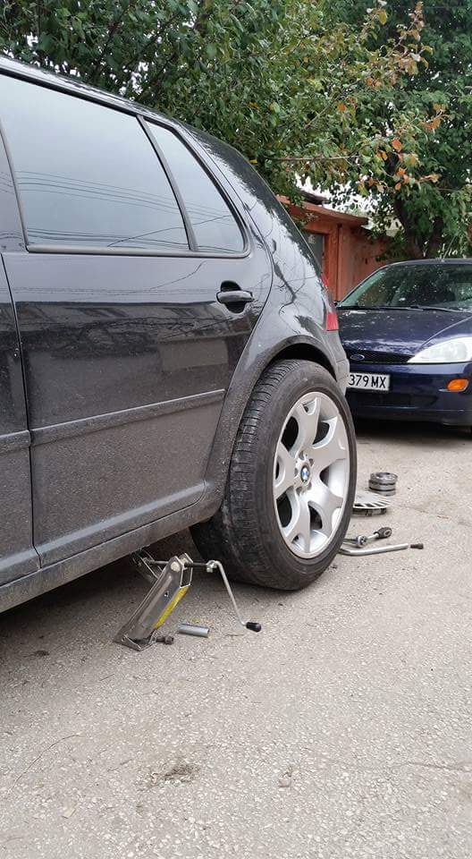 От доста време не мога да си влезна в темата по неизвестни за мен причини, затова пиша от ново потребителско име. Отново към темата защото има много какво да разкажа. Една седмица след закупуването на окачването бе монтирано на колата, първо предното а на следващият ден и задното защото не ми остана време. А ето снимки и на предното първо