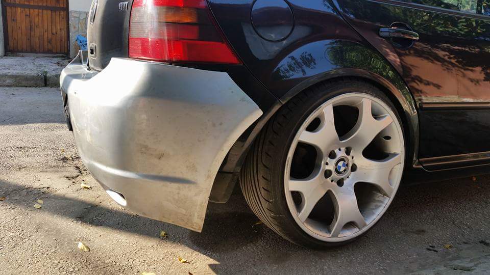 Бях решил да преключа с покупките по колата за тази година. Но най - случайно дакато си ровех в olx попаднах на една четворка на части с броний от R32 на която собственика незнаеше какво притежава. Нямаше какво да мисля направо я поръчах за смешни пари макар и да имаше пукнатина в средата. Лесна работа за моя бояджия. С тази моя "необмислена" покупка много се гордея