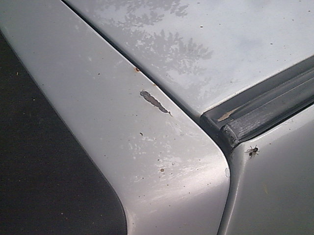 Някой неприятни изненади излезнаха под задното ляво стъкло.Ще оправим и тази неприятна фуга на багажника, ще се възстановят фабричните канали под стоповете.Вижда се и къде има спукан кит по вратата,както и една забележка по задния капак.В боята ще се сложи и перла за по добър ефект на слънце :)