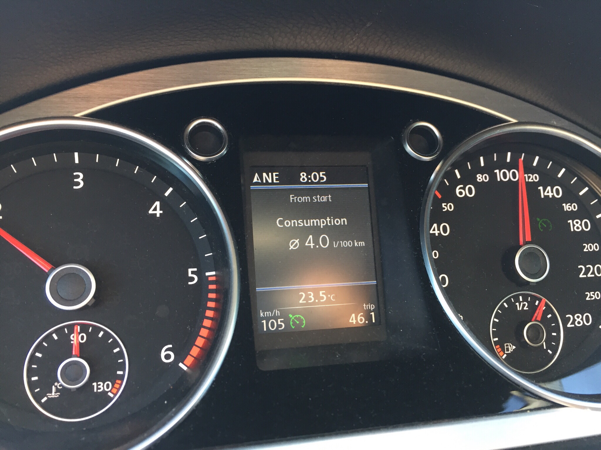 Направихме пълно обслужване на мадамата. Умишлено сложих по-евтини филтри, защото ще има смяна след 8000км. Маслото е Тотал 5w30. След като свалихме ремъците, ролките и водната помпа с изумление установихме, че те не са сменяни досега - цели 162к км. Бяха си оригиналните на ФВ. Отдолу е разхода Враца - Бяла Слатина. До Плевен разхода падна на 3.9 със същата зададена скорост. Уточнявам, че е по борд.