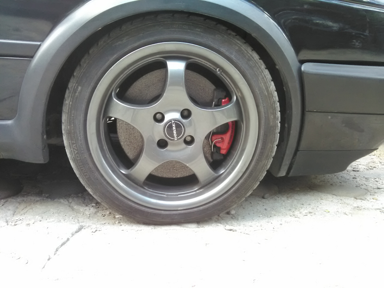 Вече с нови спирачки отпред. 312 мм. Сложих 16ките, защото фланците на 17ките тежат много, а този уикенд ще се дава газ на Калояново.