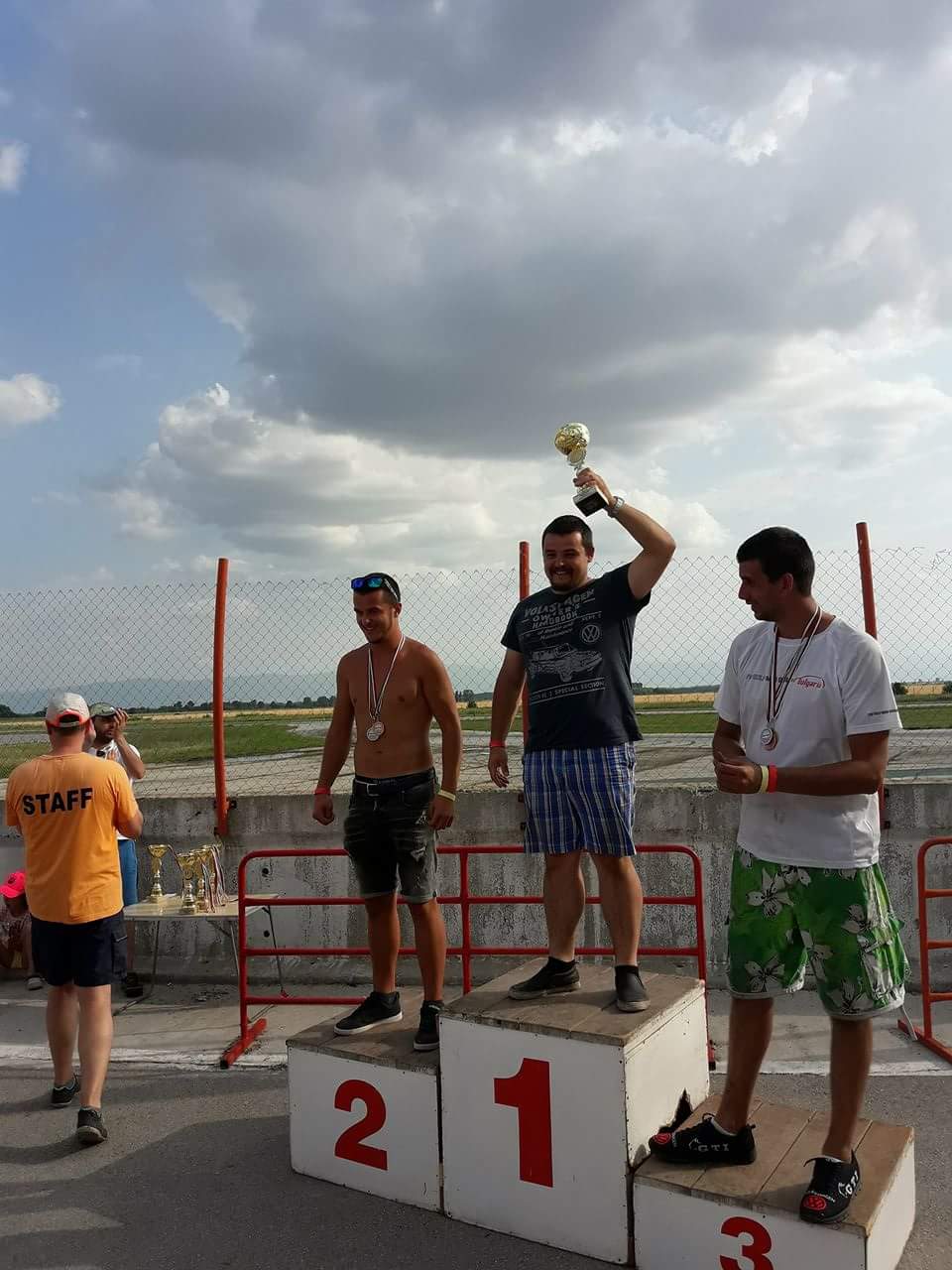 Измина още един страхотен уикенд на Калояново. Колата се представи добре. Първо място в клас Д2 / по- бързия дизелов клас/ на Тайм атак. В неделя ми се беше разхлабиля задна лява джанта, в резултат, на което се бяха развалили резбите, не стига че състоянието приключи за мен аминнезнаех как ще се прибера. В неделя в 3 часа следобед тръгнах да търся заден диск за голфа. По някаква невероятна случайност в Граф Игнатиево намерих в една морга. Върнах се на пистата и се оказа, че моята сесия не е почнала все още. И започнахме с моите приятели бърза смяна на лагер и заден диск. Сесията започна и аз вече бях сложил каската, колана и бях запалил колата и чаках да се довърши ремонтът, буквално като в бокс на състезателен тийм. Излязох в последните 4 минути и успях да завъртя само 2 обиколки, които не бяха чисти, но за щастие едната беше с най добро време. И така с 1.18.226 минути станах първи. И нещата се получиха. Като цяло се бях насочил за по ниско време, но явно това ще е за тази година, все пак и на малкия детското столче беше в колата. Догодина 4 слука и малко олекотяване и дано се получат нещата. VW тийм Ловеч взе 3 първи места с 3 коли на пистата.
