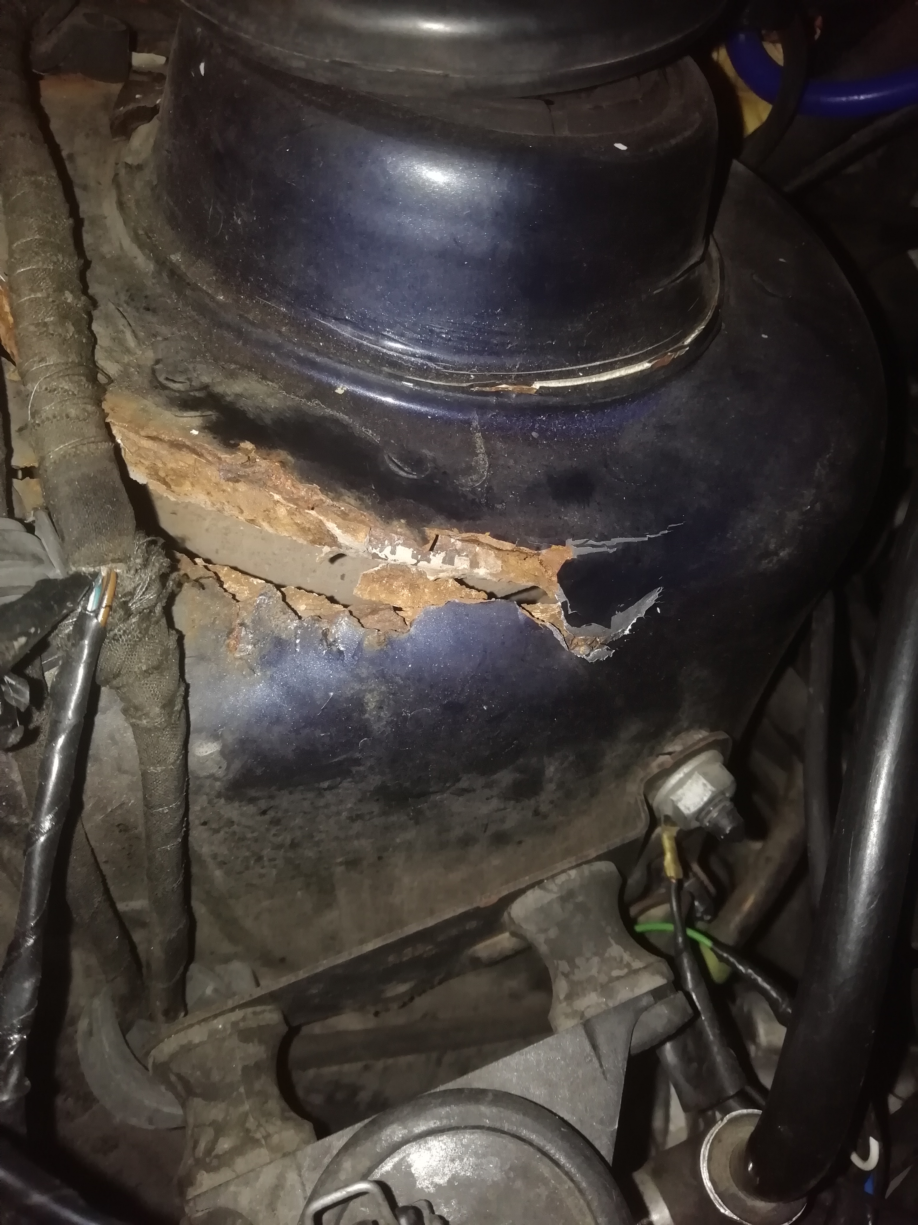 Днес на 28 септември 2021 в 22:10 купето на голфа умря. Минах през шахта и тя се отвори. Усетих как си удрям главата в тавана и почна да жули гумата в калника. Отварям капака и виждам амортисьора...