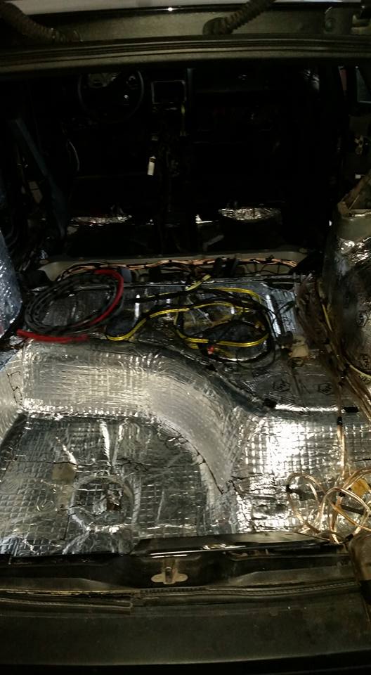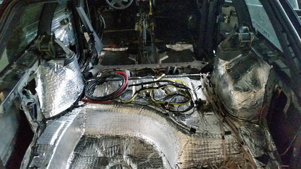 Освен това, ел.системата се захранва от AGM акумулатор и вече се намира отзад в багажника. Монтирани са 7-инчови екрани в подглавниците, сложен е втори 5-канален усилвател и 1 фарад кондензатор. До акумулатора сме изтеглили 50 квадратов кабелаж.