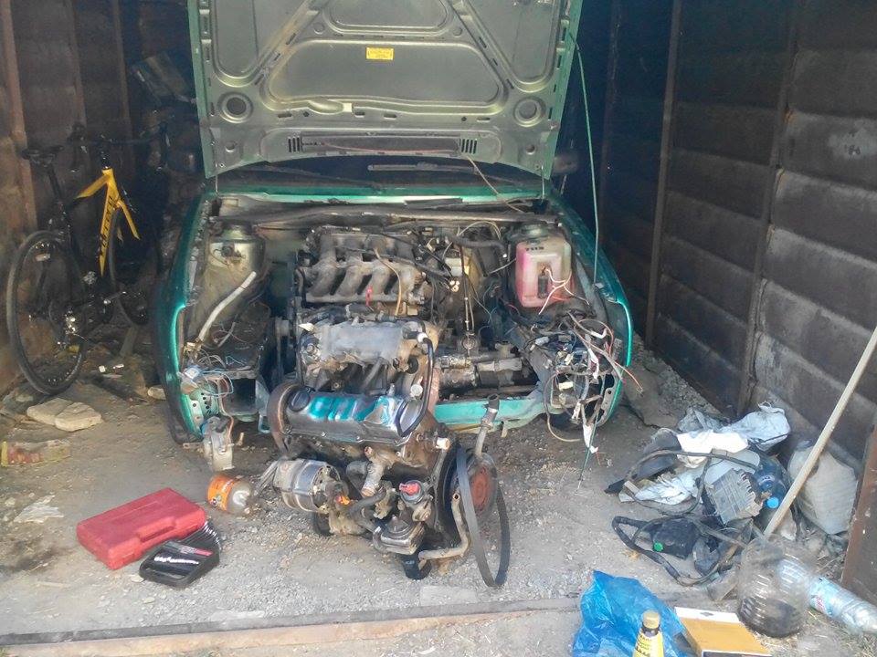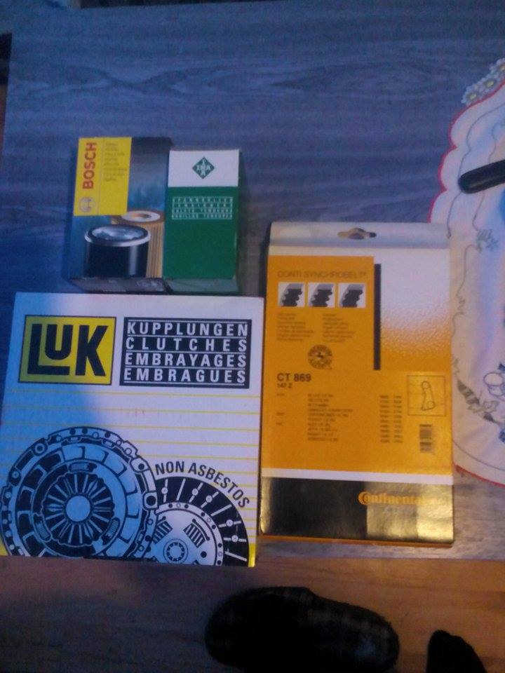 преди да го върна в коша го обслужих леко с нов съединител , ангренаж , ролка и маслен филтър останаха ми утре да купя кабели , свещи и дистрибуторна капачка и дано всичко да е окей Петък за първите тестове