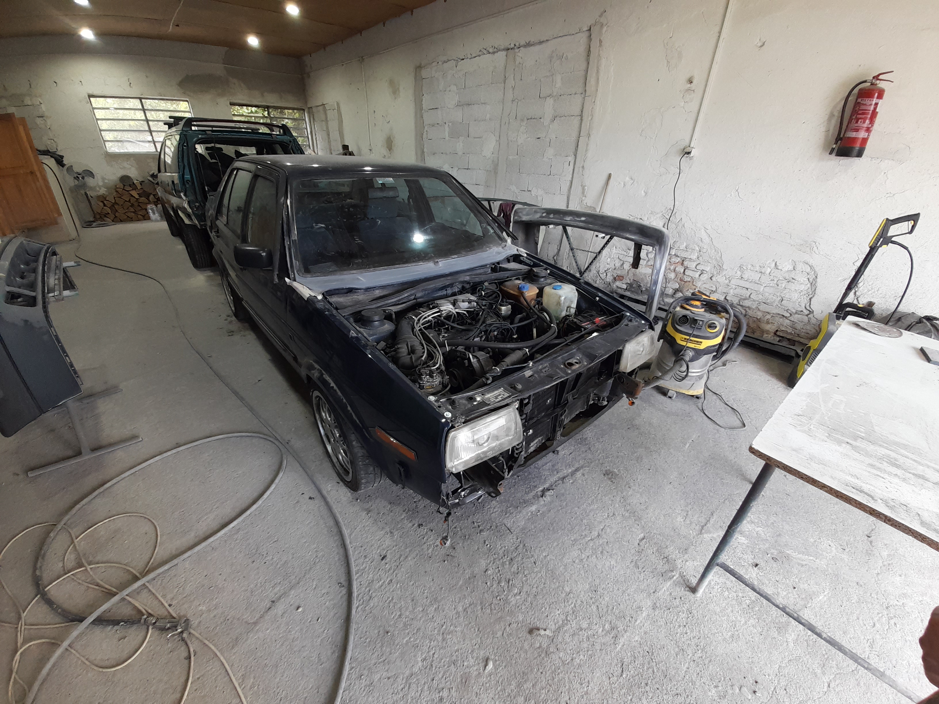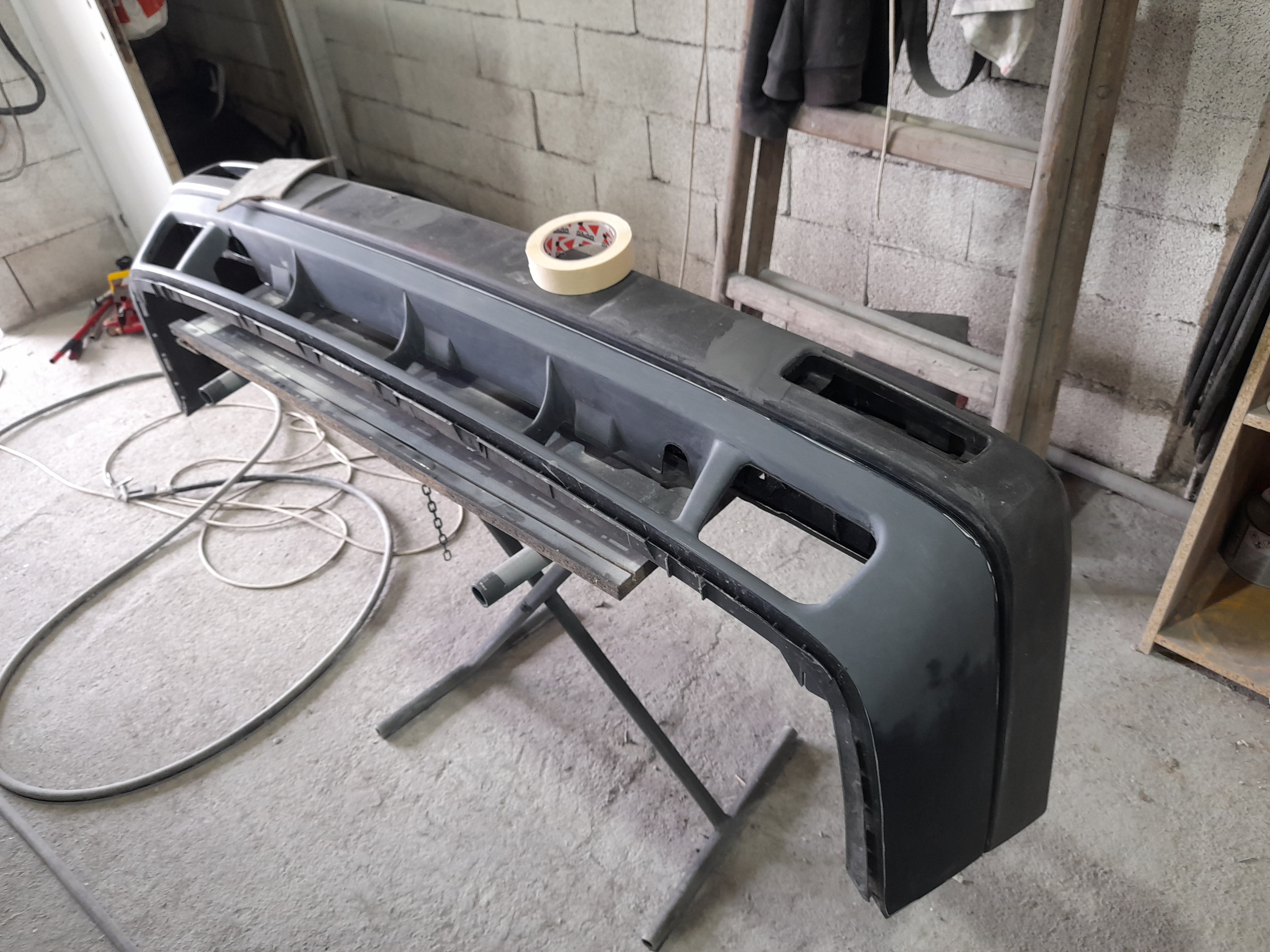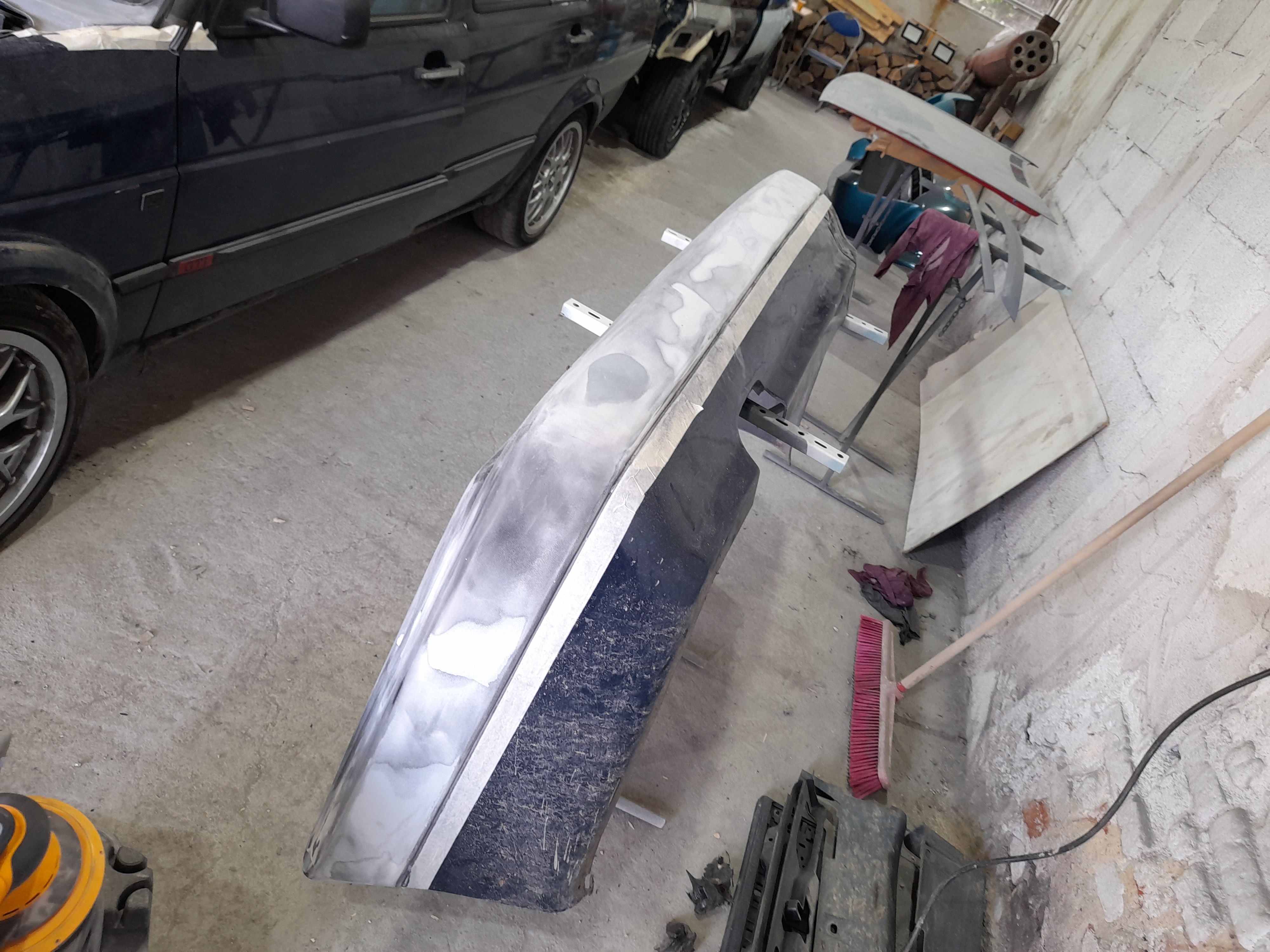 След това отиде за боя на преден капак и броня но в последсвтие се направи и гти пакета защото беше в ужасно състояние свали се подготви се за боя мина и през пластмасова заварка че по предните имаше малко забележки и по праговете също