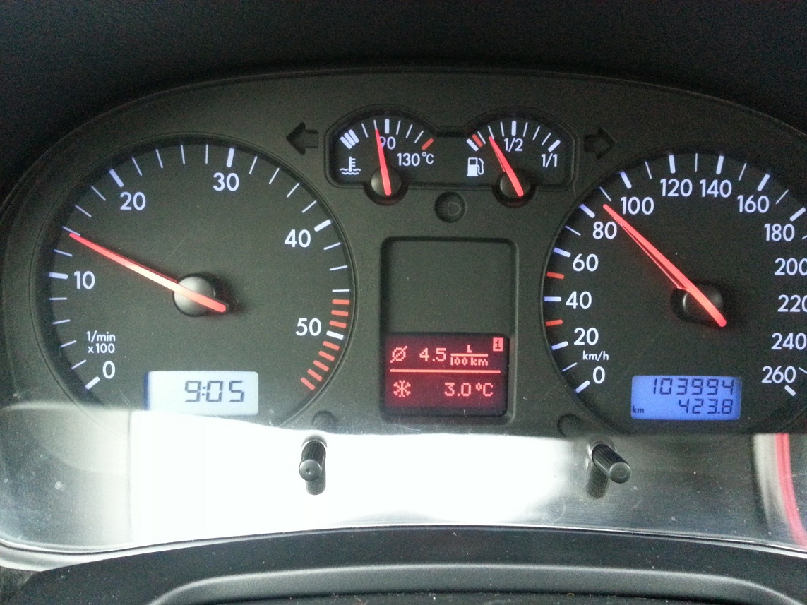 Направих и една проба: занулих дневния борд копмютър в Ловеч и карах до Севлиево със скорост до 100км/ч и видях, че тази кола можела и малко да гори