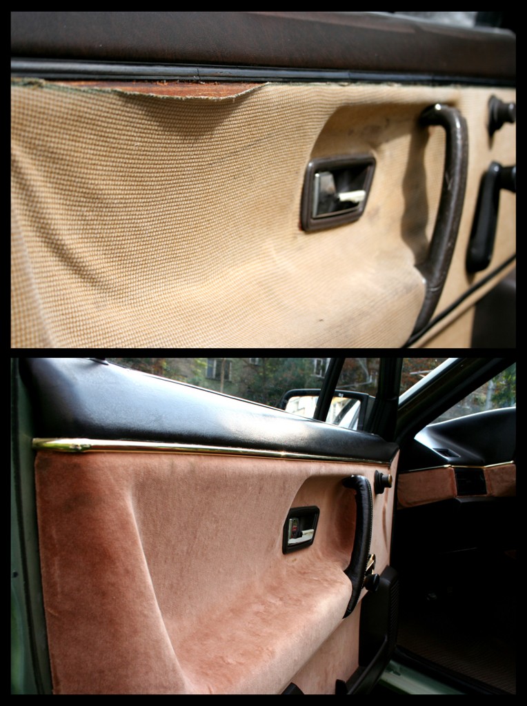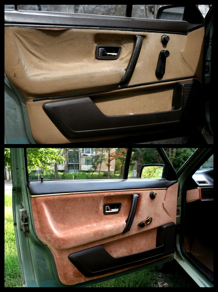 Намерих и някой части от Пасат Б2, които при мен бяха много счупени-дръжки, ръкохватки и табло. След това с помощта на приятелката ми се захванахме с претапицирането. Няма много свободно време, затова работата не върви бързо, но надявам се до лятото да имаме чисто нов салон :wink а засега...една задна врата :smile :beer