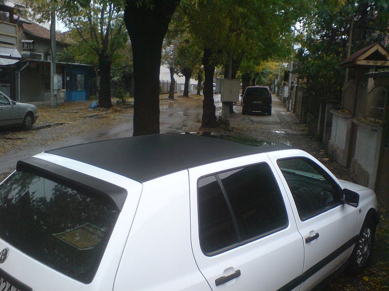От днес "Белчо" официално е с каско-благодаря за което на колегата "santo_trafficante",освен това докато правих каското,отново благодарение на "santo_trafficante" се свързах с един пич който лепи фолио(нещо което се отлагах) и така голфа се сдоби и с фолио на тавана....