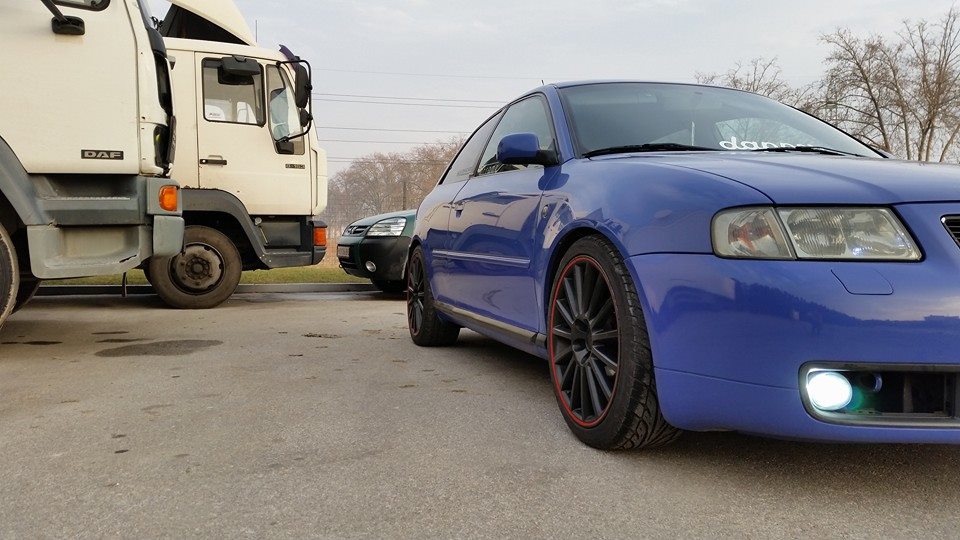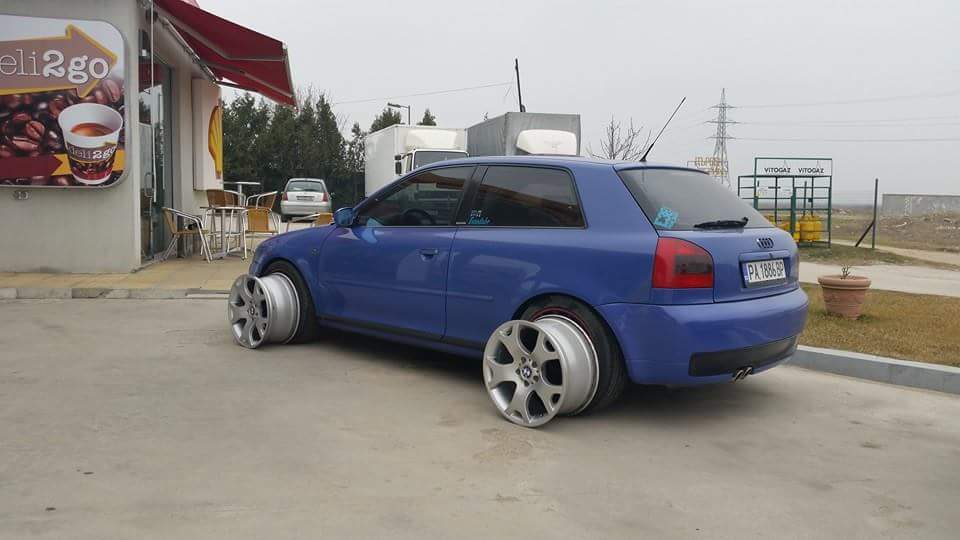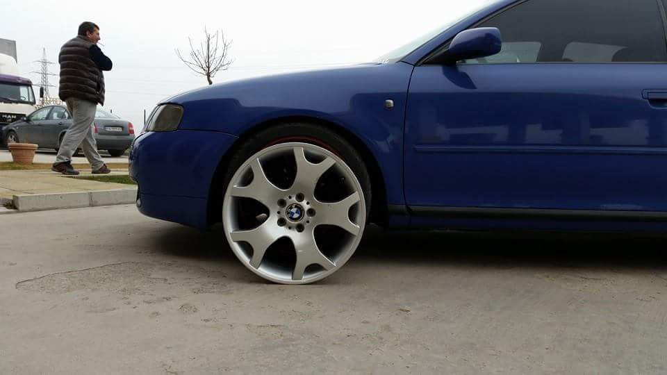 Поздравления за хубавата кола, но 2 неща въобще не ми харесват в този проект, ако ги пооправиш ще е 6+. Първото, което не ми харесва е че си направил логото черно и тя се слива с решетката и стои грозно или сложи хромирано лого или пък си купи решетка без лого. Второто, което не ми харесва е червения кант по джантите, да черната джанта много си ходи на синя кола, но с червен кант е абсурд. Аз ако бях на твое място щях да ги разкарам тези джанти и щях да си купя ББС хем ще седи по-хубаво хем по-агресивно ето и снимка, какво имам предвид, но колата си е твоя все пак на теб трябва да ти хареса.