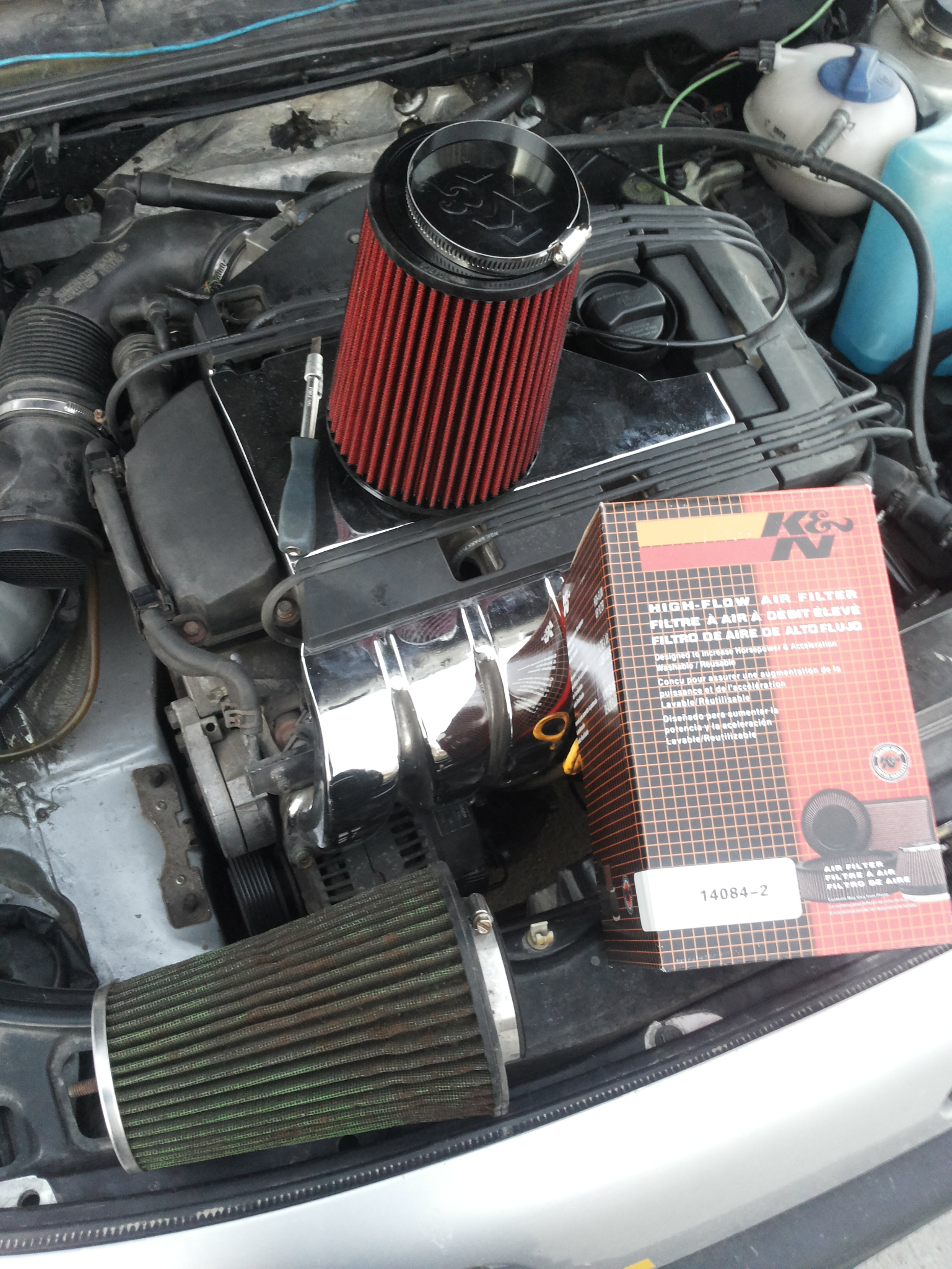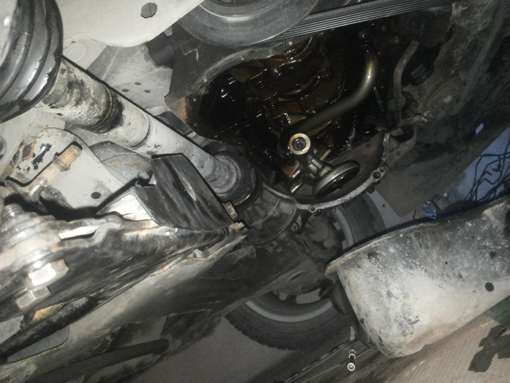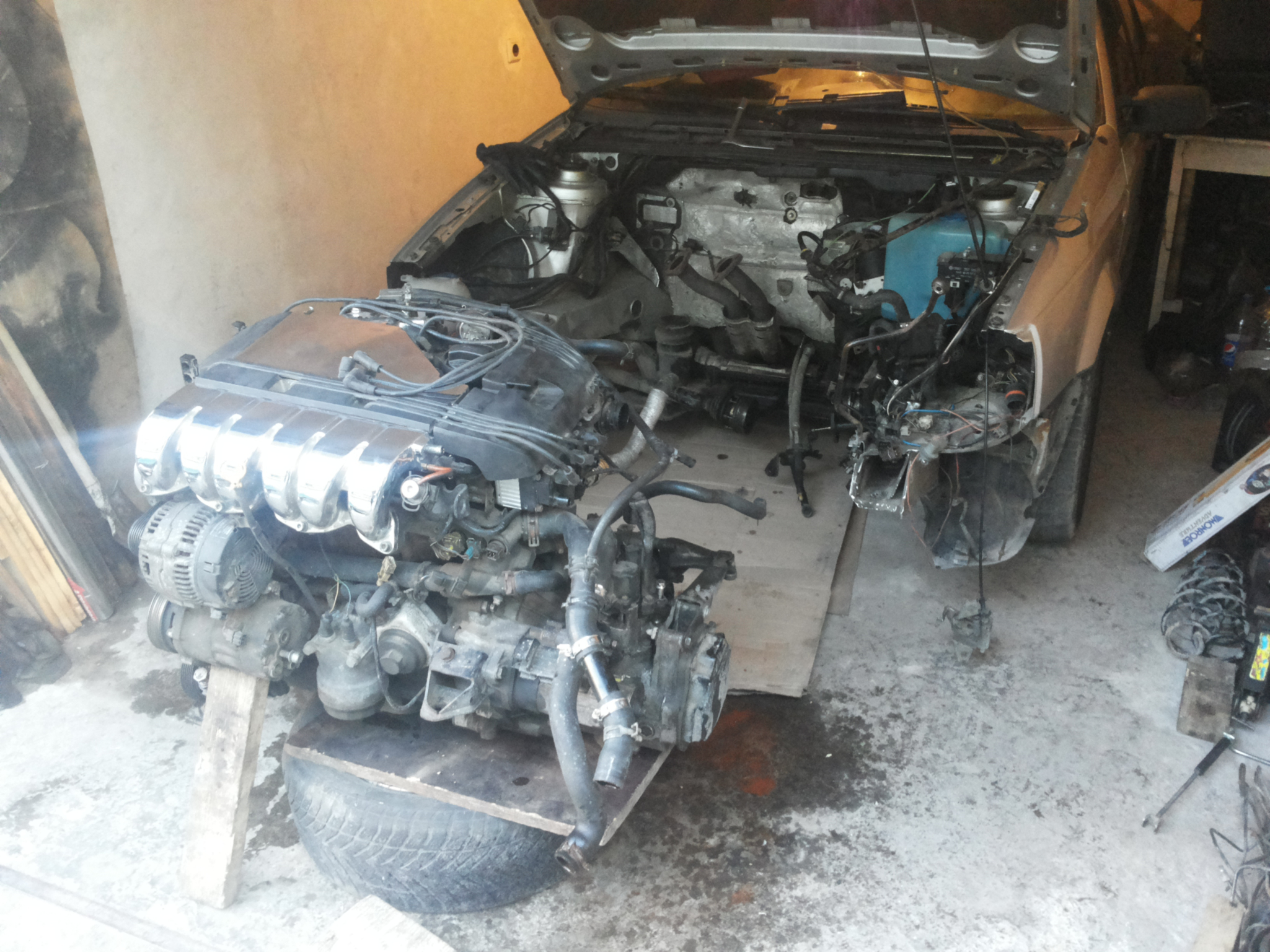 Намерих носачи от б4-ABF, и трябваше да ги сменя. Левия смених лесно. Отдясно обаче се оказа ,че немога да развия болта на малкия тампон. Картера на VR6-а стои много близо до носача и немога да сложа камъка, за да развия болта.