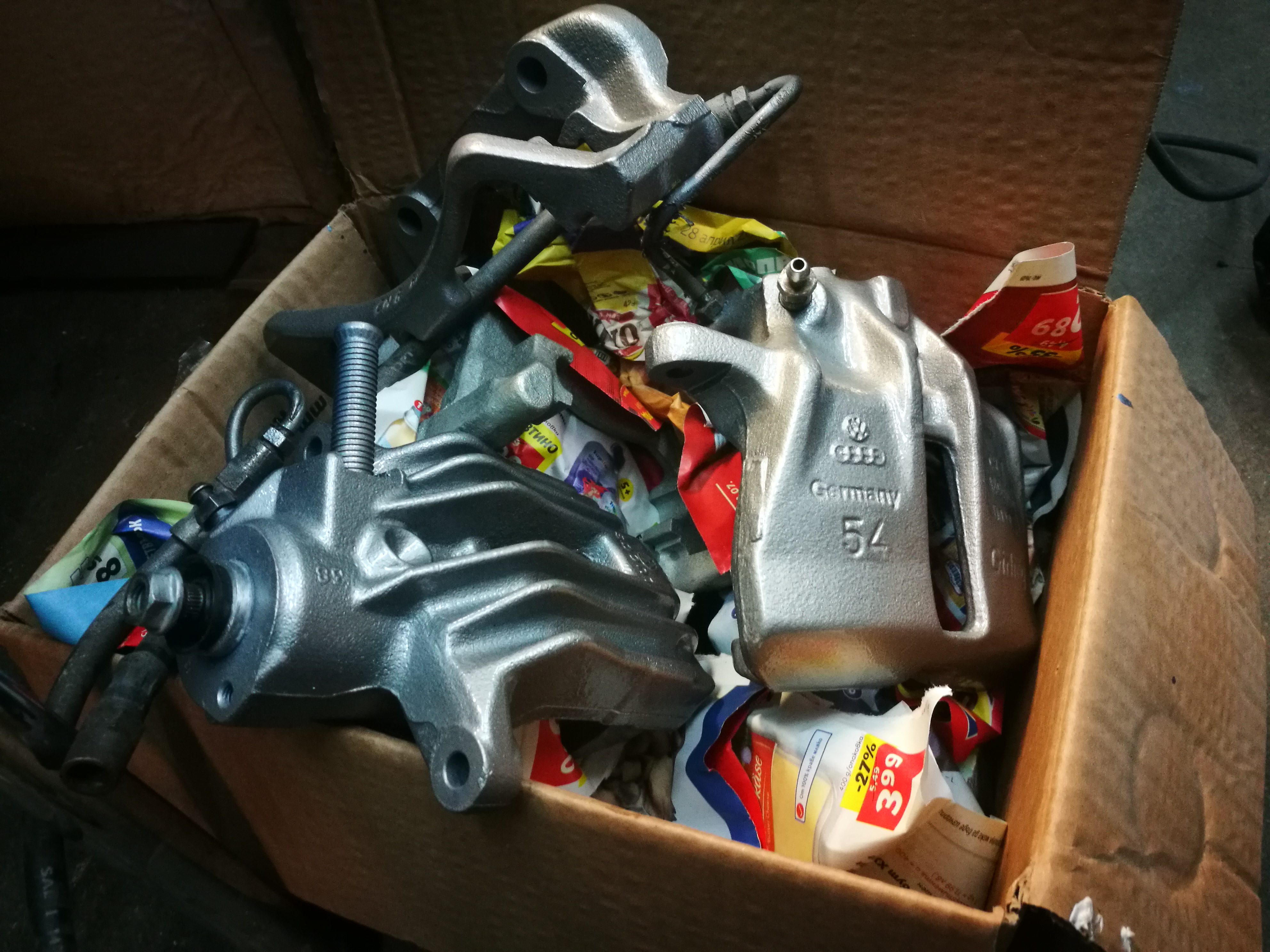 Другата седмица, живот и здраве ще обезчестя един Пасат Б4 отпред. Задни си намерих в автоморгата в Чирпан за 30лв двата апарата. Умувам върху размера на спирачния диск и имам някои съображения - хем искам да е с 280мм, хем пък не... Мой приятел ме посъветва да сложа спирачна помпа от Т4 24мм бутало като сменям спирачките. Силно се надявам да успея да развия спирачните тръби без поражения, когато сменявам маркучите, помпата и апаратите. Че иначе трябва и нови тръби да слагам.