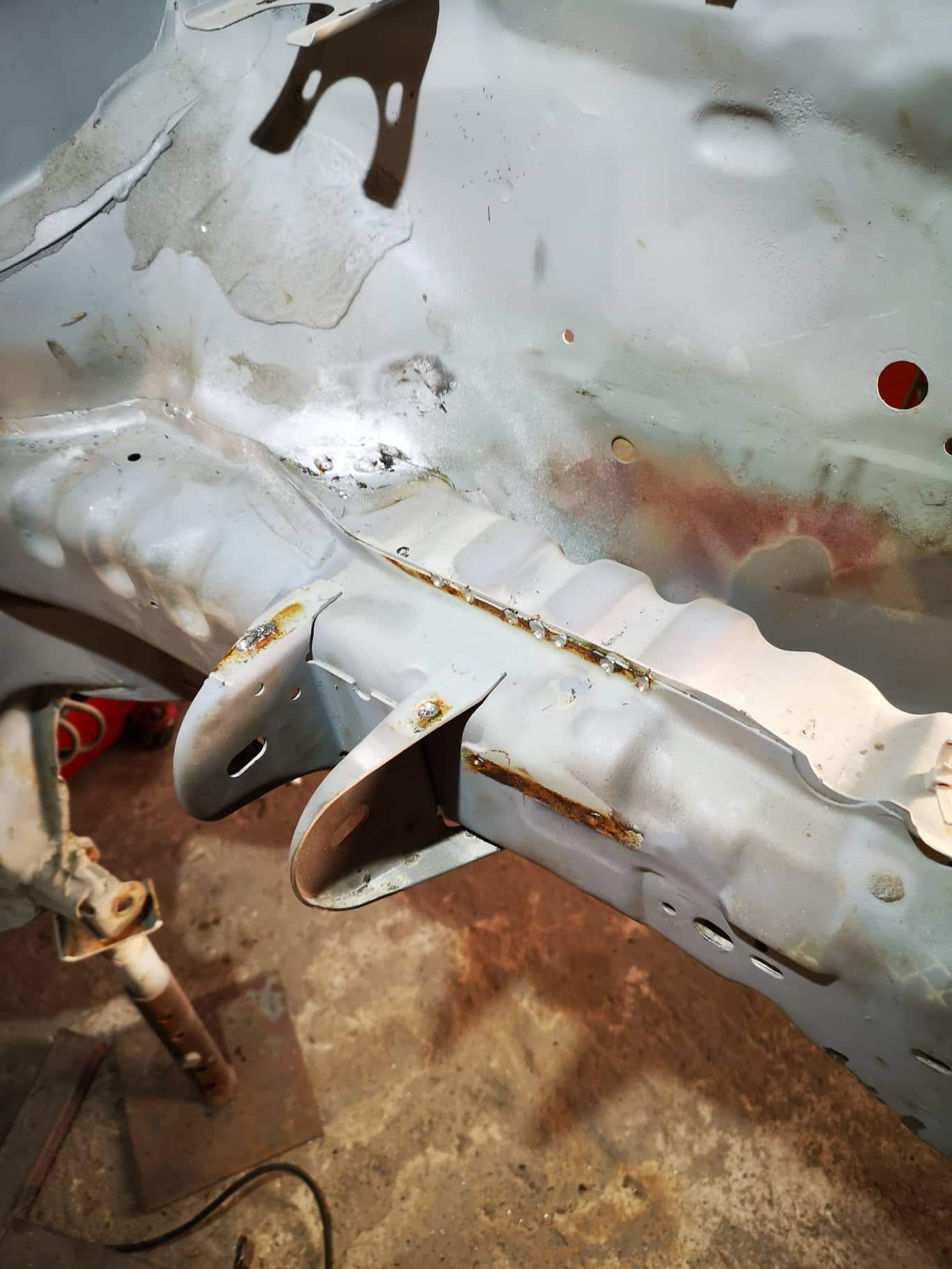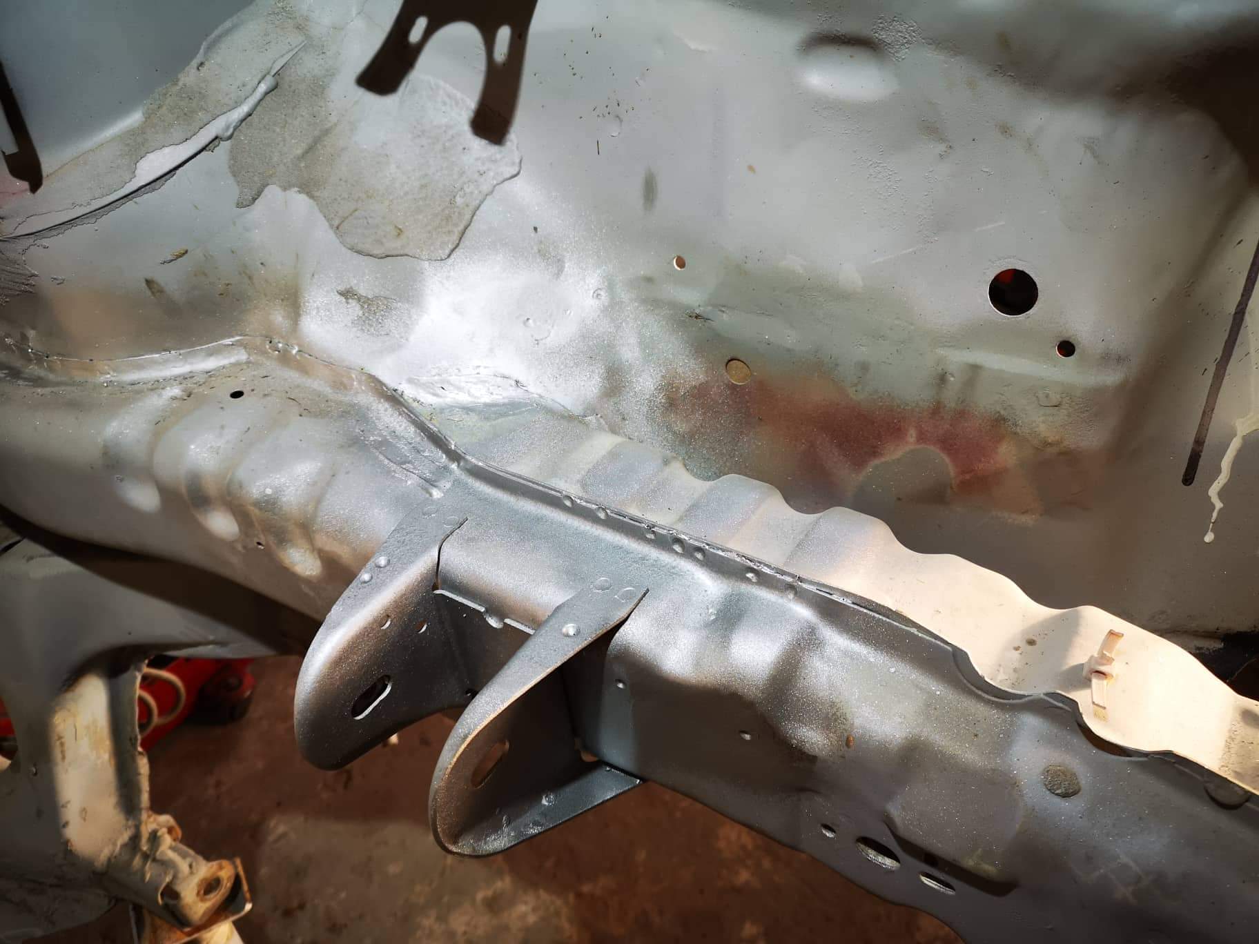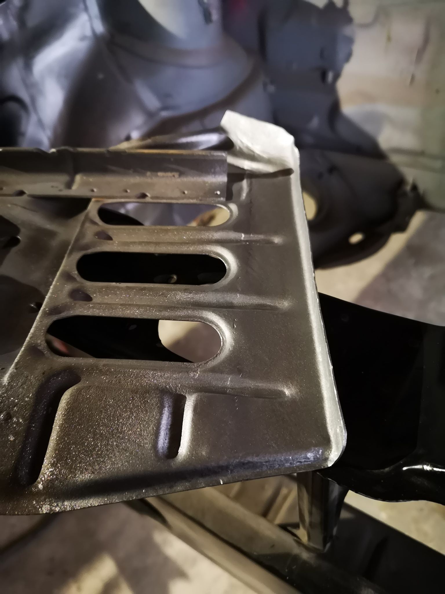Стойката на акумулатора дойде бонус към левия рог, който сменяхме, че имаше поизгнило, но пък беше изрязана кофти през средата , та се наложи да си я възстановим до оригиналния вид, мисля че се получи добре