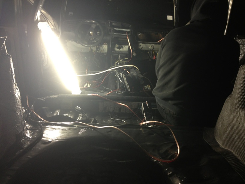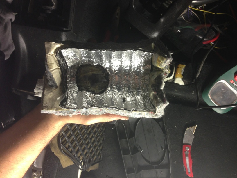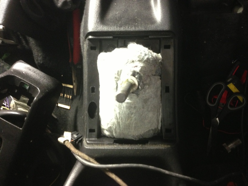 Особено много внимание отделихме на шумоизолирането на самата скоростна кутия. Там се наложи да се прояви ама много въображение. Миро изобрети нещо като презерватив от бутилка, облечен в алуминиево-битумния материал, допълнително опакован в парчета от оригиналната вата. Това беше нахлузено на скоростния лост и се получи нещо ... чудно: