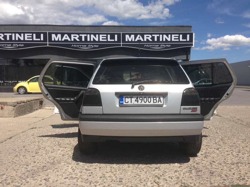 Това е. Следват снимките на новия голф в сглобено състояние с имплантирани от стария голф фарове, стопове, мигачи, салони и т.н. Наследих го с чуден кожен таван, който се върза с кожения ми салон на 100 процента и с много хубав ... спортен волан. Отказах се да боядисвам колата. Всички ми казват, че сиво-черното било много харно, но една част от мен още иска да го матира в черно. Най-вероятно никога няма да стане.