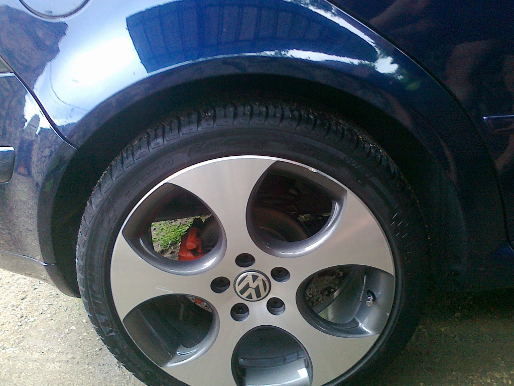 Монтирах джантите най-накрая всичко е ок,не усещам разлика във вървежа,но определено комфорта се влоши, 18" не е много за нашите пътища.Ето ги вече с всички капачки,та дори и по един секрет.Единствено като погледна разстоянието между гумата и калника леко се ядосвам